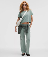 Peach-Fuzz Soft, Softstreme™ Fabric Peach-fuzz soft texture Feels smooth next to skin Four-way stretch Quick-drying Weighty drape Machine washable. Water drops can easily mark this fabric—a simple wash will remove them 100% of the polyester in this product is recycled (excluding trims) Fabric is derived from wood-based materials from well-managed forests High Rise, Full Length An easy fit that floats away from your body Falls straight down from hip to hem 31" inseam, intended to sit below the ankle for heights of 5'5"-5'8" Product Features Front pockets with interior card sleeve Shockcord at the waist to customize fit Material and care Materials Palm Side Pocket: 86% Recycled Polyester14% Elastane Waistband: 53% Recycled Polyester38% Lenzing Modal9% Elastane Body: 53% Recycled Polyester38% Lenzing Modal9% Elastane Knuckle Side Pocket: 90% Recycled Polyester10% Lycra Elastane Care Wash separately Machine wash cold gentle Do not bleach Lay flat to dry Do not iron Do not dry clean Imported