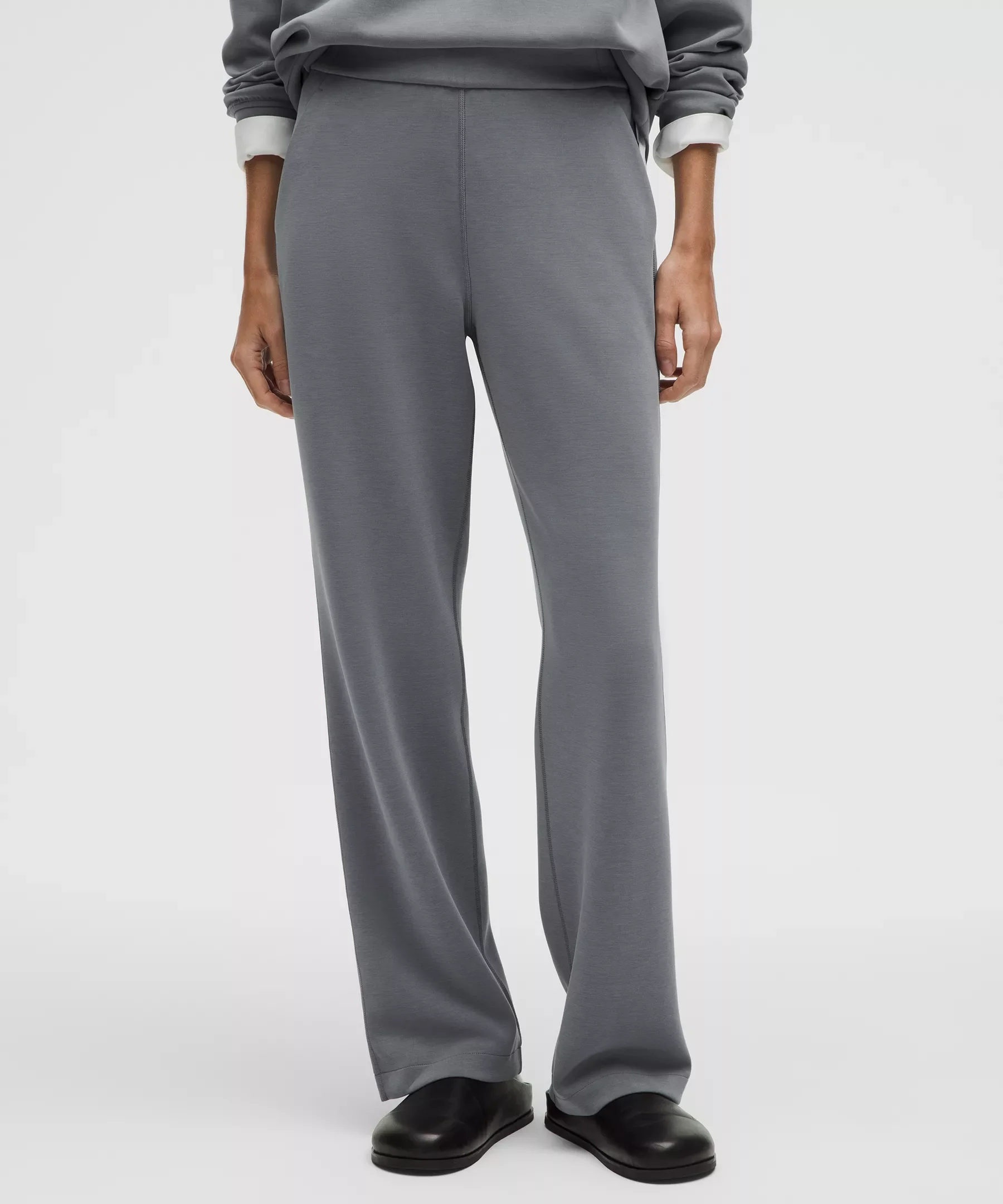 Designed for Casual Peach-Fuzz Soft, Softstreme™ Fabric - Peach-fuzz soft texture - Feels smooth next to skin - Four-way stretch - Weighty drape - Machine washable. Water drops can easily mark this fabric—a simple wash will remove them - 100% of the polyester in this product is recycled (excluding trims) - Fabric is derived from wood-based materials from well-managed forests High Rise, Full Length - Slim fit skims your body - Falls straight down from hip to hem - 31" inseam, intended to skim the floor for heights of 5'5"–5'8" Product Features - Hand pockets, one with a hidden card sleeve - Elastic waistband with a hidden drawcord Material and care Materials Body: 53% Polyester (recycled)38% Modal9% Elastane - Waistband: 53% Polyester (recycled)38% Modal9% Elastane - Pocket Lining: 86% Polyester (recycled)14% Elastane Care Machine Wash Cold - Do Not Bleach - Tumble Dry Low - Do Not Iron - Do Not Dry Clean - Turn Garment Inside Out - Wash Separately