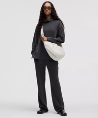 Designed for Casual Peach-Fuzz Soft, Softstreme™ Fabric - Peach-fuzz soft texture - Feels smooth next to skin - Four-way stretch - Quick-drying - Weighty drape - Machine washable. Water drops can easily mark this fabric—a simple wash will remove them - 100% of the polyester in this product is recycled (excluding trims) - Fabric is derived from wood-based materials from well-managed forests High Rise, Full Length - Slim fit skims your body - Falls straight down from hip to hem - 33.5" inseam, intended to skim the floor for heights of 5'9" and above Product Features - Hand pockets with hidden card sleeve - Elastic waistband with a hidden drawcord Material and care Materials Pocket Lining: 86% Polyester (recycled)14% Elastane - Body: 53% Polyester (recycled)38% Lenzing Modal9% Elastane - Waistband: 53% Polyester (recycled)38% Lenzing Modal9% Elastane Care Machine Wash Cold - Do Not Bleach - Tumble Dry Low - Do Not Iron - Do Not Dry Clean - Turn Garment Inside Out, Wash Separately