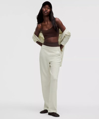 Peach-Fuzz Soft, Softstreme™ Fabric Peach-fuzz soft texture Feels smooth next to skin Four-way stretch Quick-drying Weighty drape Machine washable. Water drops can easily mark this fabric—a simple wash will remove them 100% of the polyester in this product is recycled (excluding trims) Fabric is derived from wood-based materials from well-managed forests High Rise, Full Length Slim fit skims your body Falls straight down from hip to hem 31" inseam, intended to skim the floor for heights of 5'5"–5'8" Product Features Hand pockets with hidden card sleeve Elastic waistband with a hidden drawcord Material and care Materials Pocket Lining: 86% Recycled Polyester14% Elastane Waistband: 53% Recycled Polyester38% Modal9% Elastane Body: 53% Recycled Polyester38% Modal9% Elastane Care Wash separately Machine wash cold gentle Do not bleach Lay flat to dry Do not iron Do not dry clean Imported
