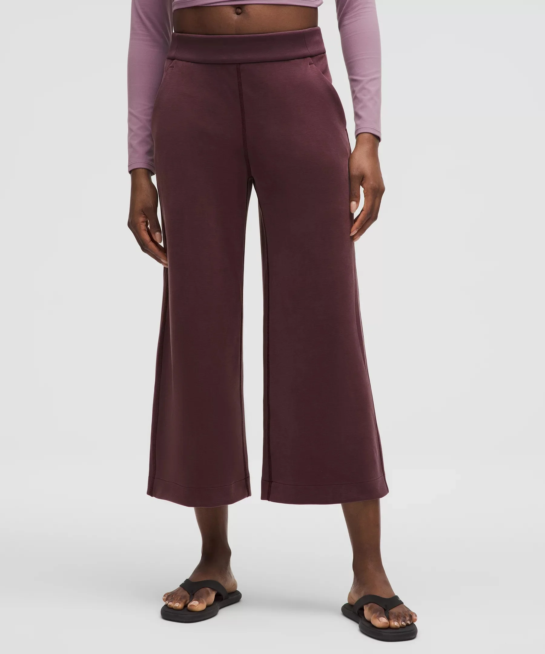 Designed for Casual Peach-Fuzz Soft, Softstreme™ Fabric - Peach-fuzz soft texture - Feels smooth next to skin - Weighty drape - Machine washable. Water drops can easily mark this fabric—a simple wash will remove them - Fabric is derived from wood-based materials from well-managed forests - 100% of the polyester in this product is recycled (excluding trims) High Rise, Cropped Length - Classic fit is an easy fit that floats away from your body - Wide-cut legs - Intended to sit below calf Product Features - Hand pockets with hidden card sleeve - Continuous drawcord Material and care Materials Pocket Lining: 86% Recycled Polyester14% Elastane - Waistband: 53% Recycled Polyester38% Modal9% Elastane - Body: 53% Recycled Polyester38% Modal9% Elastane Care Machine Wash Cold - Do Not Bleach - Tumble Dry Low - Do Not Iron - Do Not Dry Clean - Turn Garment Inside Out - Wash Separately