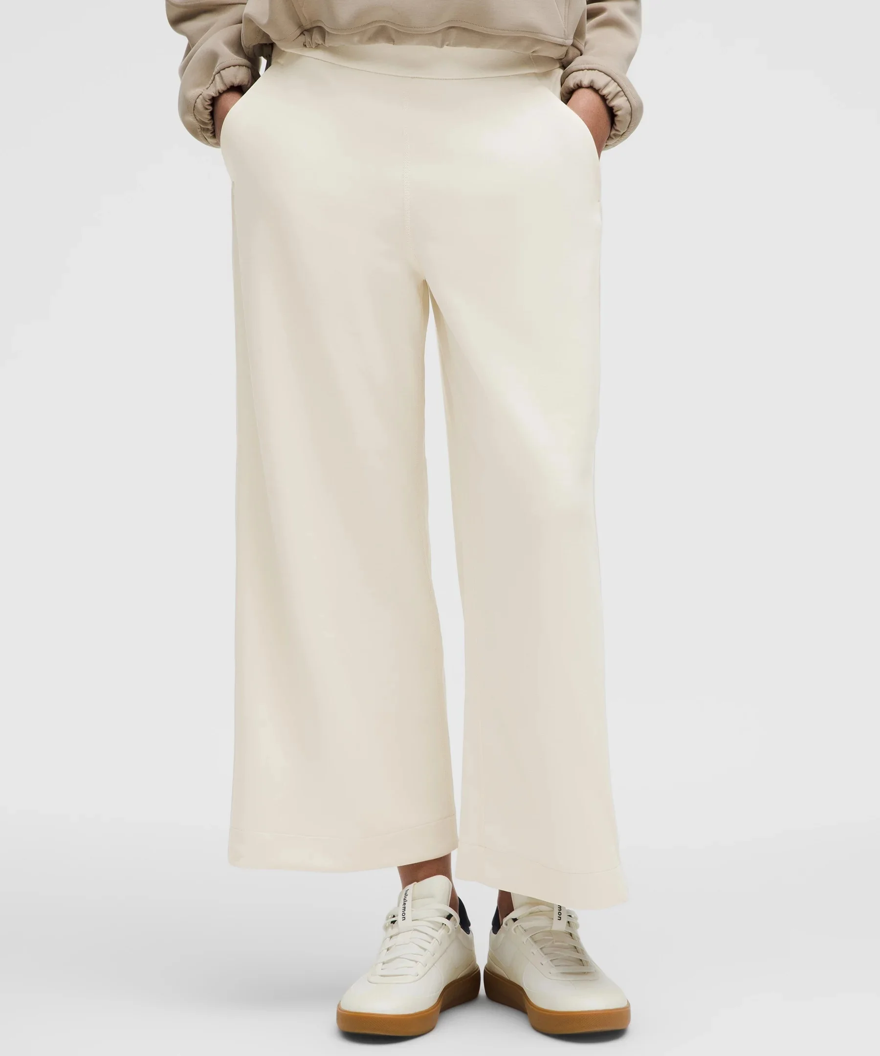 Designed for Casual Peach-Fuzz Soft, Softstreme™ Fabric - Peach-fuzz soft texture - Feels smooth next to skin - Weighty drape - Machine washable. Water drops can easily mark this fabric—a simple wash will remove them - Fabric is derived from wood-based materials from well-managed forests - 100% of the polyester in this product is recycled (excluding trims) High Rise, Cropped Length - Classic fit is an easy fit that floats away from your body - Wide-cut legs - Intended to sit below calf Product Features - Hand pockets with hidden card sleeve - Continuous drawcord Material and care Materials Pocket Lining: 86% Recycled Polyester14% Elastane - Waistband: 53% Recycled Polyester38% Modal9% Elastane - Body: 53% Recycled Polyester38% Modal9% Elastane Care Machine Wash Cold - Do Not Bleach - Tumble Dry Low - Do Not Iron - Do Not Dry Clean - Turn Garment Inside Out - Wash Separately