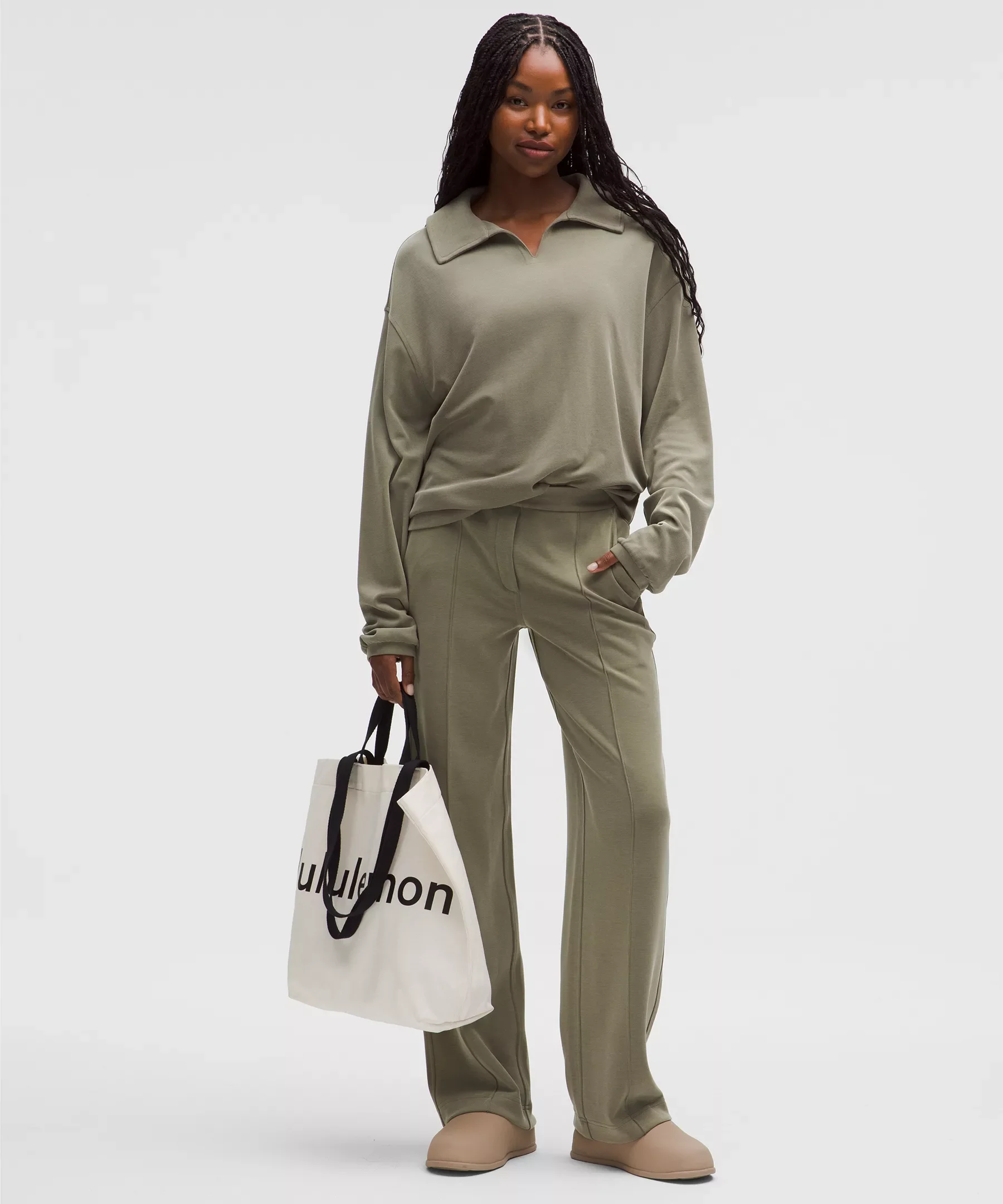 Designed for Casual Peach-Fuzz Soft, Softstreme™ Fabric - Peach-fuzz soft texture - Feels smooth next to skin - Four-way stretch - Weighty drape - Machine washable. Water drops can easily mark this fabric—a simple wash will remove them Mid Rise, Full Length - Slim fit skims your body - Falls straight down from hip to hem - 31" inseam, intended to skim the floor for heights of 5'5"–5'8" Product Features - Hand pockets, one with a hidden card sleeve - Faux fly and back welt pockets - Continuous drawcord - Pull-on waistband is flat on the inside for a smooth, distraction-free feel next to skin Material and care Materials Body: 53% Recycled Polyester38% Modal9% Elastane - Pocket Lining: 86% Recycled Polyester14% Elastane - Waistband: 53% Recycled Polyester38% Modal9% Elastane Care Machine Wash Cold - Do Not Bleach - Tumble Dry Low - Do Not Iron - Do Not Dry Clean - Turn Garment Inside Out - Wash Separately