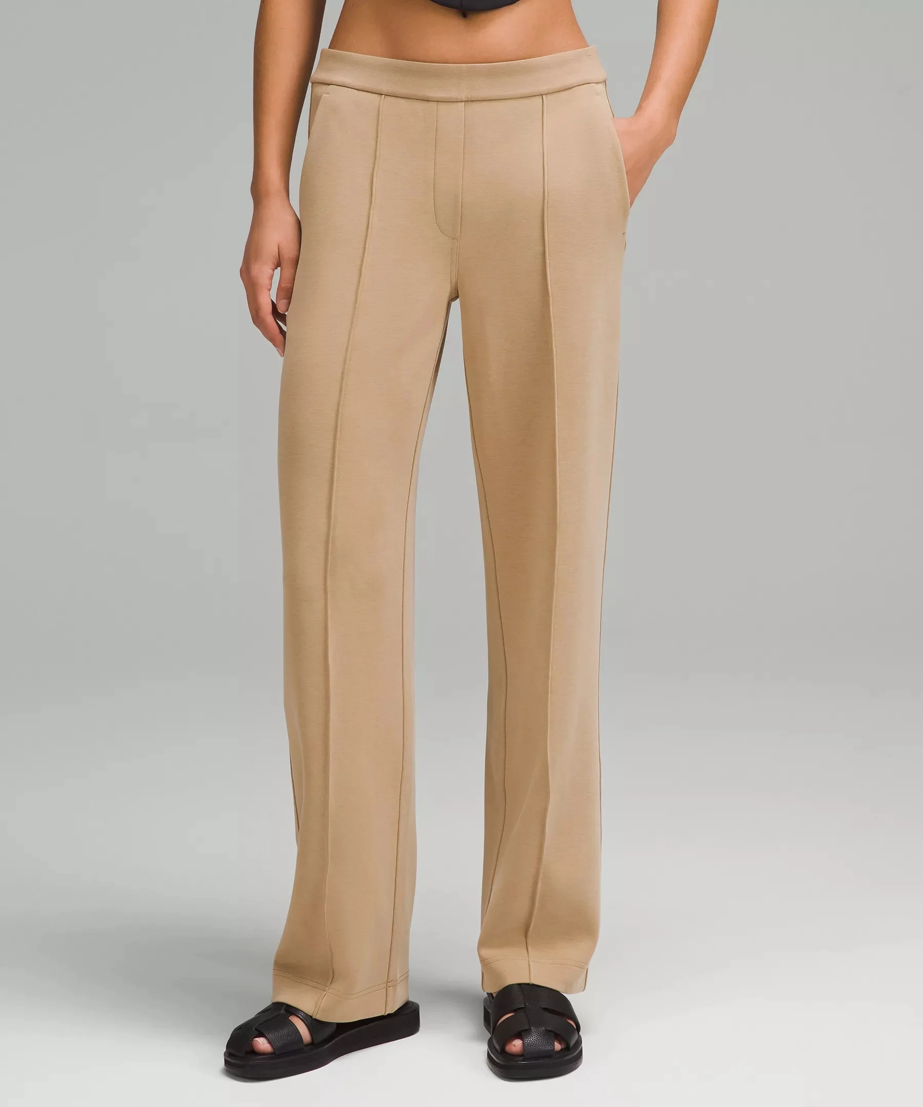 Peach-Fuzz Soft, Softstreme™ Fabric Peach-fuzz soft texture Feels smooth next to skin Four-way stretch Quick-drying Weighty drape Machine washable. Water drops can easily mark this fabric—a simple wash will remove them 100% of the polyester in this product is recycled (excluding trims) Fabric is derived from responsibly sourced wood-based materials that support the protection of ancient and endangered forests Mid Rise, Full Length Slim fit skims your body Falls straight down from hip to hem 29.5" inseam is intended to skim the floor for heights of 5'5"-5'8" Product Features Hand pockets with hidden card sleeve Faux fly and back welt pockets Continuous drawcord Pull-on waistband is flat on the inside for a smooth, distraction-free feel next to skin Material and care Materials Pocket Lining: 86% Recycled Polyester14% Elastane Waistband: 53% Recycled Polyester38% Lenzing Modal9% Elastane Body: 53% Recycled Polyester38% Lenzing Modal9% Elastane Care Wash separately Machine wash cold gentle Do not bleach Lay flat to dry Do not iron Do not dry clean Imported