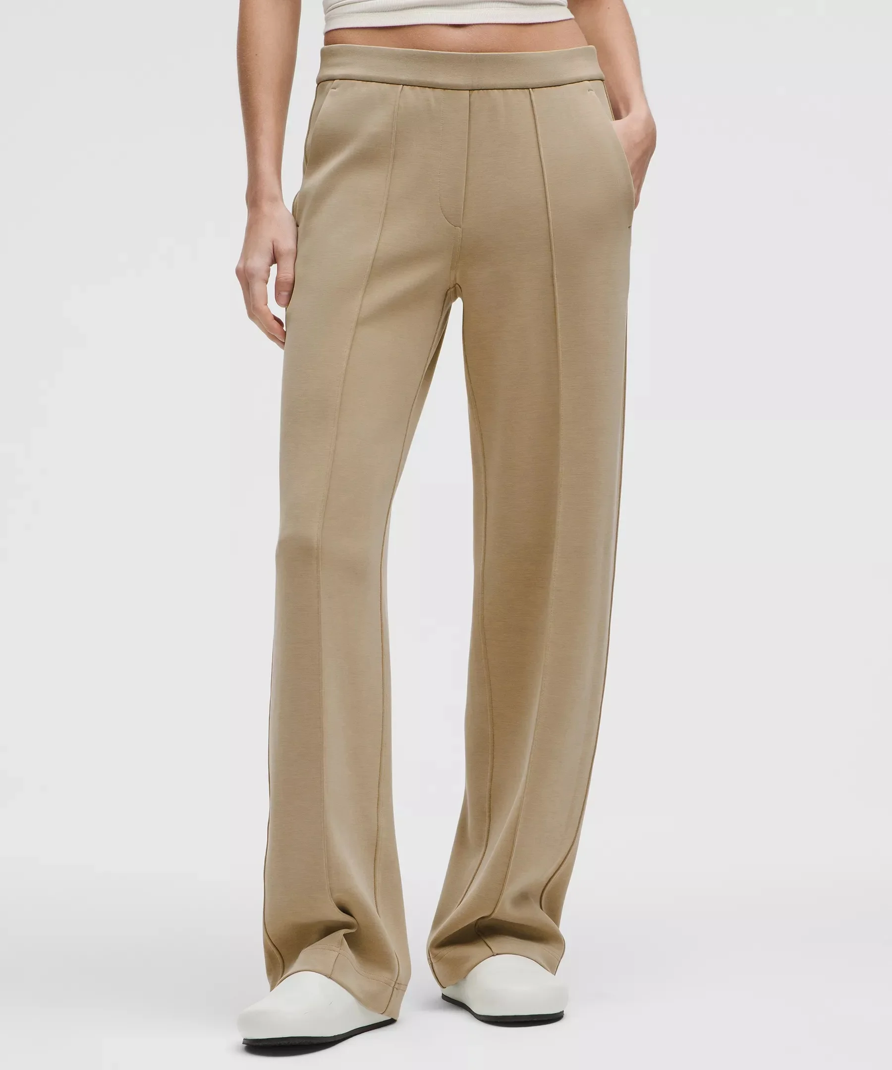 Designed for Casual Peach-Fuzz Soft, Softstreme™ Fabric - Peach-fuzz soft texture - Feels smooth next to skin - Four-way stretch - Quick-drying - Weighty drape - Machine washable. Water drops can easily mark this fabric—a simple wash will remove them Mid Rise, Full Length - Slim fit skims your body - Falls straight down from hip to hem - 31.5" inseam, intended to skim the floor for heights of 5'5"-5'8" Product Features - Hand pockets with hidden card sleeve - Faux fly and back welt pockets - Continuous drawcord - Pull-on waistband is flat on the inside for a smooth, distraction-free feel next to skin Material and care Materials Pocket Lining: 86% Recycled Polyester14% Elastane - Waistband: 53% Recycled Polyester38% Modal9% Elastane - Body: 53% Recycled Polyester38% Modal9% Elastane Care Machine Wash Cold - Do Not Bleach - Tumble Dry Low - Do Not Iron - Do Not Dry Clean - Turn Garment Inside Out - Wash Separately