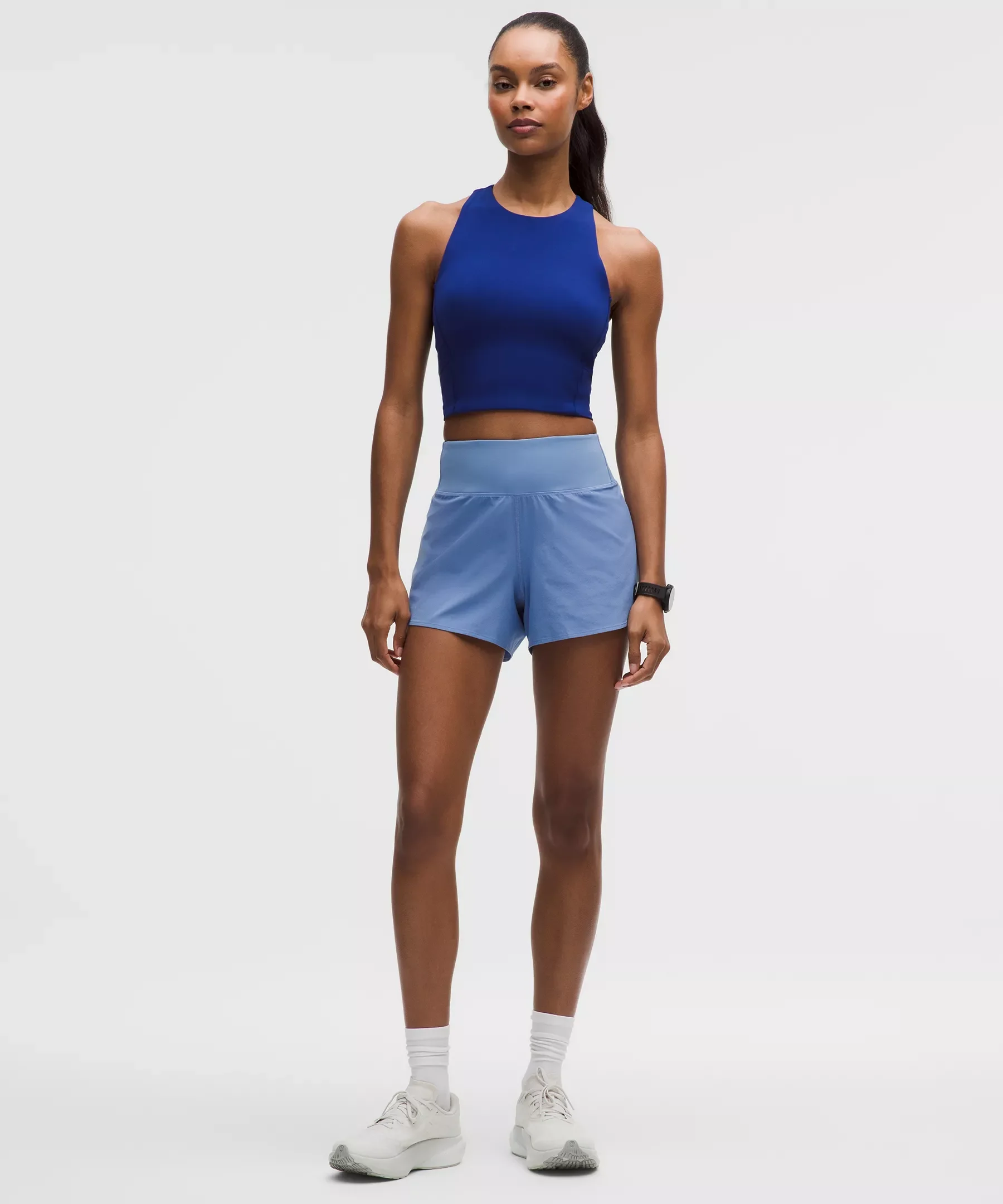 Designed for Running Lightweight, Swift Fabric - Lightweight - Four-way stretch - Sweat-wicking - Quick-drying - Lightweight liner is sweat-wicking and quick-drying with added stretch - 100% of the polyester in this product is recycled (excluding trims) - This product contains recycled nylon made from repurposed plastic waste Updated Fit - Subtle adjustments to rise for a fit that sits slightly higher on the hip - High rise - 4" length Product Features - Built-in liner offers extra coverage - Connected gel pockets on the waistband give you flexible storage options - Secure back pocket - Continuous drawcord - Updated mesh seaming across the back for added airflow Material and care Materials Body: 86% Polyester (recycled)14% Elastane - Inner Waistband: 87% Nylon13% Lycra Elastane - Liner: 89% Polyester (recycled)11% Lycra Elastane - Outer Waistband: 77% Nylon23% Lycra Elastane - Waistband Lining: 89% Nylon (recycled)11% Elastane Care Machine Wash Cold - Do Not Bleach - Tumble Dry Low - Do Not Iron - Do Not Dry Clean - Wash With Like Colors