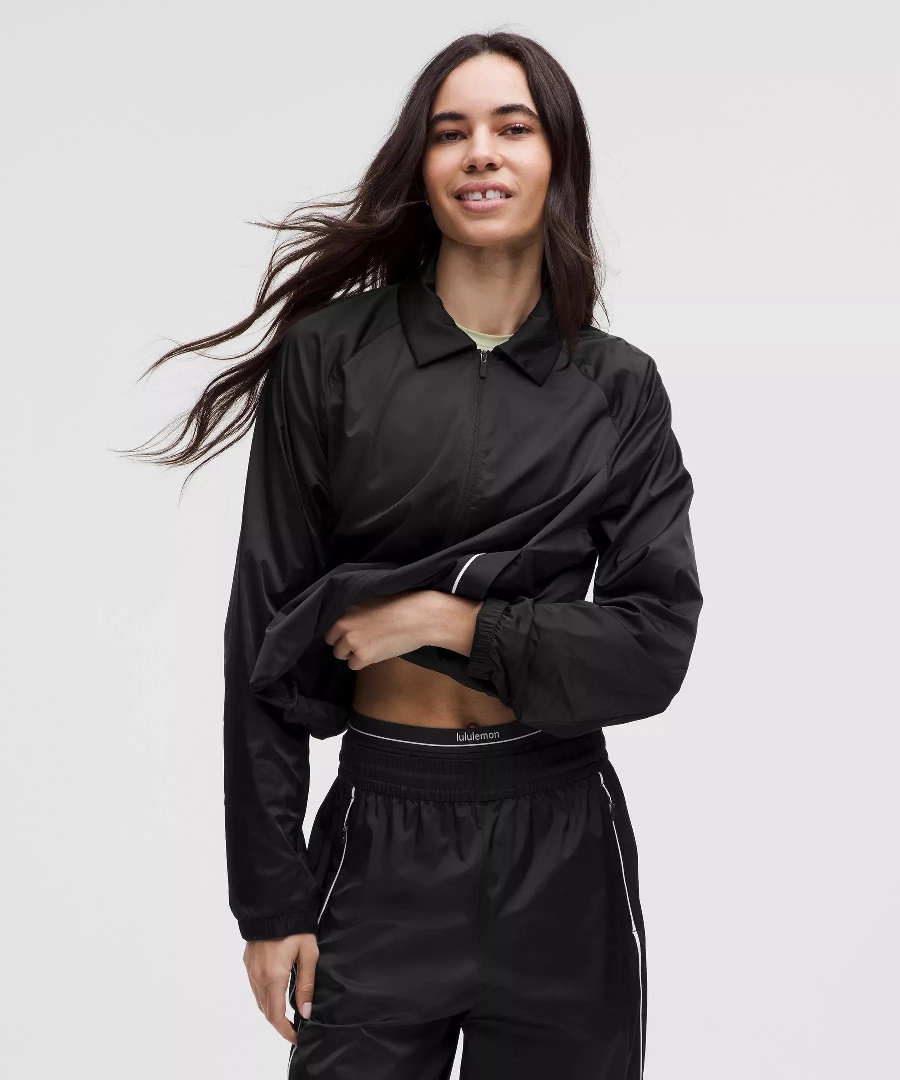 Designed for Training Abrasion-Resistant, Stretch Satin Fabric - Abrasion-resistant - Satin fabric has a glossy shine - Sweat-wicking - Quick-drying Oversized Fit, Cropped Length - An exaggerated fit that feels extra roomy - Cut above the waist—perfect with high-rise pants Product Features - Hand pockets with hidden card sleeve - Cinchable hem - Locker loop for easy hanging Material and care Materials Body: 85% Nylon15% Elastane - Pockets: 86% Recycled Polyester14% Elastane - Lining: 86% Recycled Polyester14% Elastane Care Machine Wash Cold - Do Not Bleach - Tumble Dry Low - Do Not Iron - Do Not Dry Clean - Wash With Like Colors