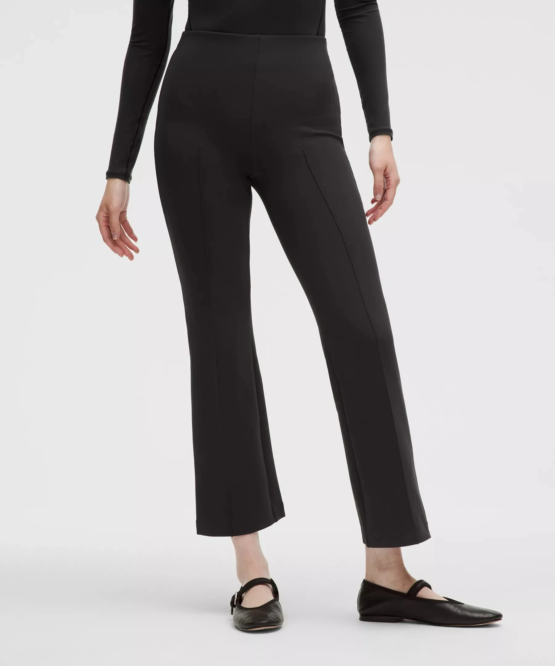 Four-Way Stretch, Spacer Construction Four-way stretch Sweat-wicking Quick-drying Spacer construction makes this garment breathable and thermoregulating High Rise, 7/8 Length Slim fit skims your body Subtle kick flare at the hems Intended to sit below calf Product Features Wide, ribbed internal waistband is soft, stays put, and creates a sleek look Material and care Materials Body: 88% Nylon12% Elastane Care Wash with like colours Machine wash cold Do not bleach Tumble dry low Do not iron Do not dry clean Imported
