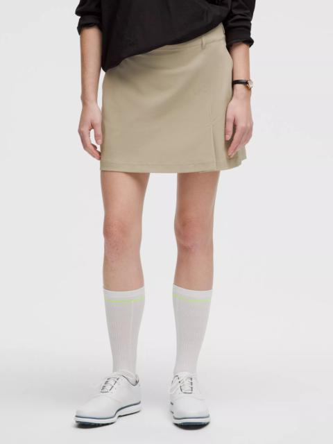 Designed for Golf Four-Way Stretch, Twill Fabric - Four-way stretch - Water-repellent High Rise, Mini Length - Slim fit skims your body - 4" liner length Product Features - Hand pockets - Small drop-in pocket on the right-hand side for golf tees - Back welt pockets are stitched closed—snip the stitches to make the pockets functional - Built-in liner offers extra coverage Material and care Materials Pocket Lining: 100% Recycled Polyester - Body: 90% Nylon10% Elastane - Liner: 83% Recycled Polyester17% Elastane Care Machine Wash Cold - Do Not Bleach - Tumble Dry Low - Do Not Iron - Do Not Dry Clean - Wash With Like Colors
