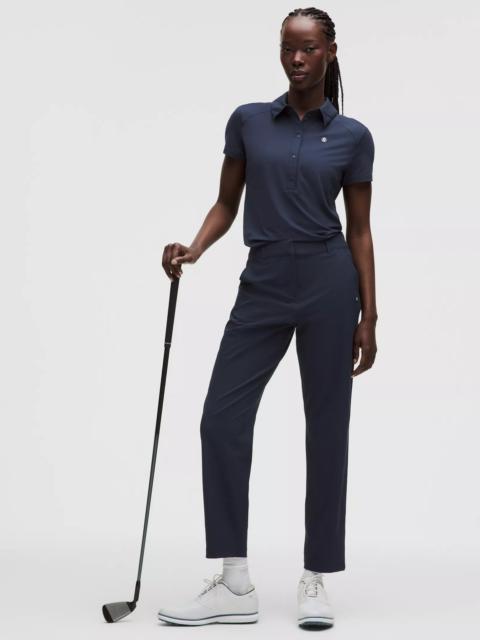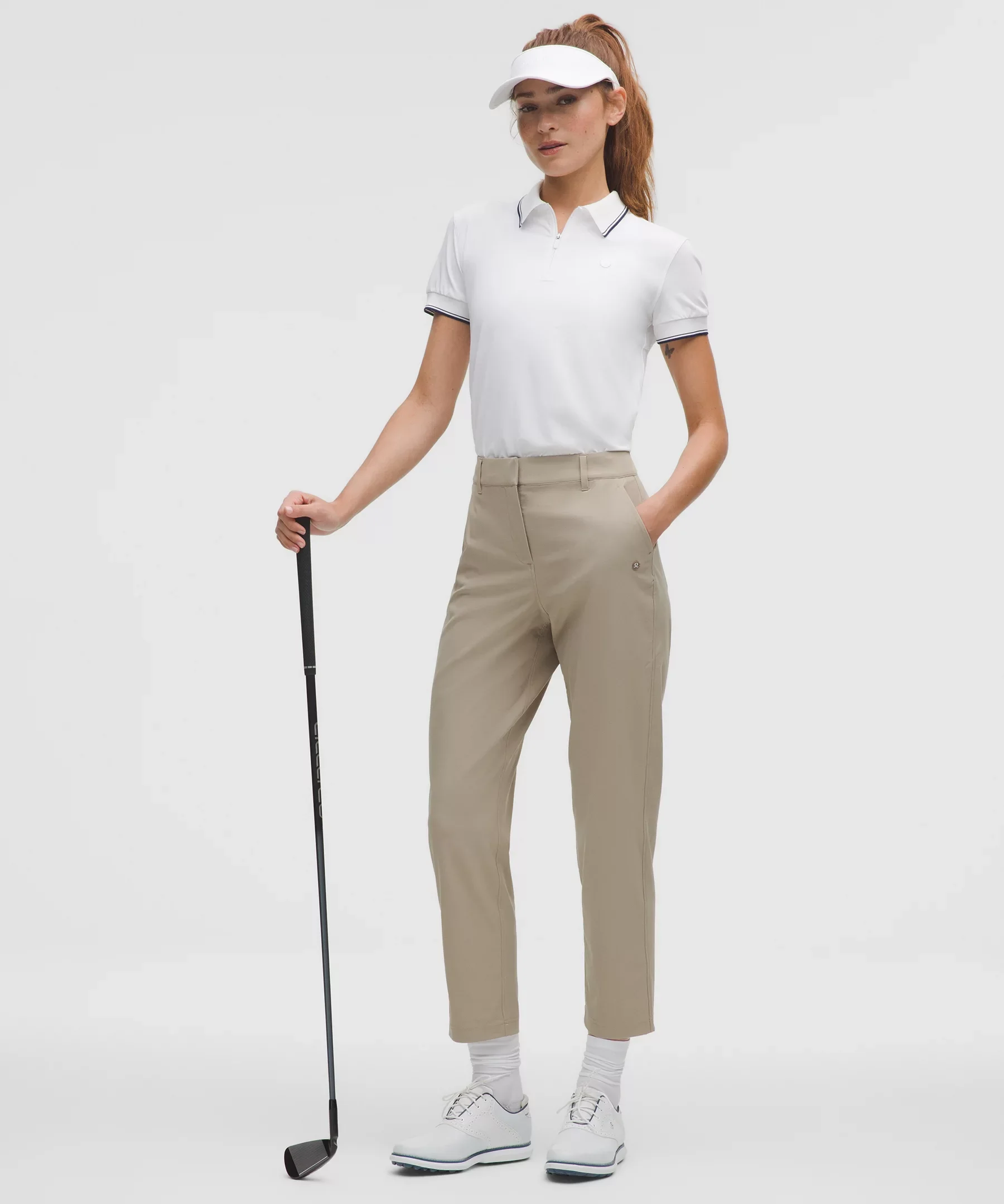 Designed for Golf Water-Repellent, Twill Fabric - Water-repellent - Four-way stretch High Rise, Full Length - Slim fit skims your body - Full length intended to sit at ankle Product Features - Hand pockets - Small drop-in pocket on the right-hand side for golf tees - Back welt pockets are stitched closed—snip the stitches to make the pockets functional - Fly front Material and care Materials Body: 90% Nylon10% Elastane - Pocket Lining: 100% Recycled Polyester Care Machine Wash Cold - Do Not Bleach - Tumble Dry Low - Do Not Iron - Do Not Dry Clean - Wash With Like Colors
