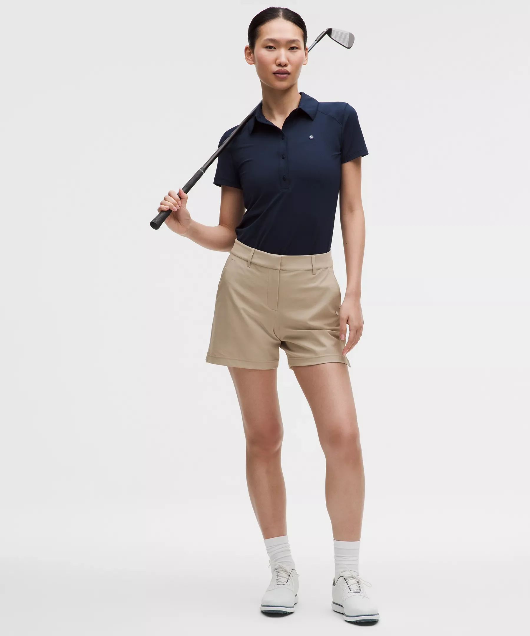 Designed for Golf Water-Repellent, Twill Fabric - Water-repellent - Four-way stretch High Rise, 5" Length - Slim fit skims your body Product Features - Hand pockets - Small drop-in pocket on the right-hand side for golf tees - Back welt pockets are stitched closed—snip the stitches to make the pockets functional - Fly front Material and care Materials Pocket Lining: 100% Polyester (recycled) - Body: 90% Nylon10% Elastane Care Machine Wash Cold - Do Not Bleach - Tumble Dry Low - Do Not Iron - Do Not Dry Clean - Wash With Like Colors