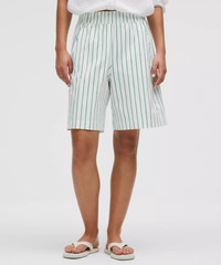 Stretch Woven Ruffle-Waist High-Rise Short 9"