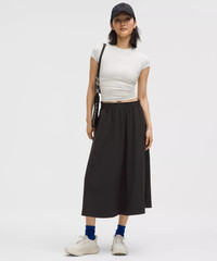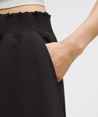 Designed for Casual Lightweight, Stretch Woven Fabric - Lightweight - Water-repellent - Fabric has a soft, crinkle texture High Rise, Midi Length - Relaxed fit is roomy through glutes and thighs - Hits below the knee to just above the ankle Product Features - Hand pockets with hidden card sleeve Material and care Materials Body: 89% Nylon11% Elastane - Pocket Lining: 86% Recycled Polyester14% Elastane Care Machine Wash Cold - Do Not Bleach - Tumble Dry Low - Do Not Iron - Do Not Dry Clean - Wash With Like Colors