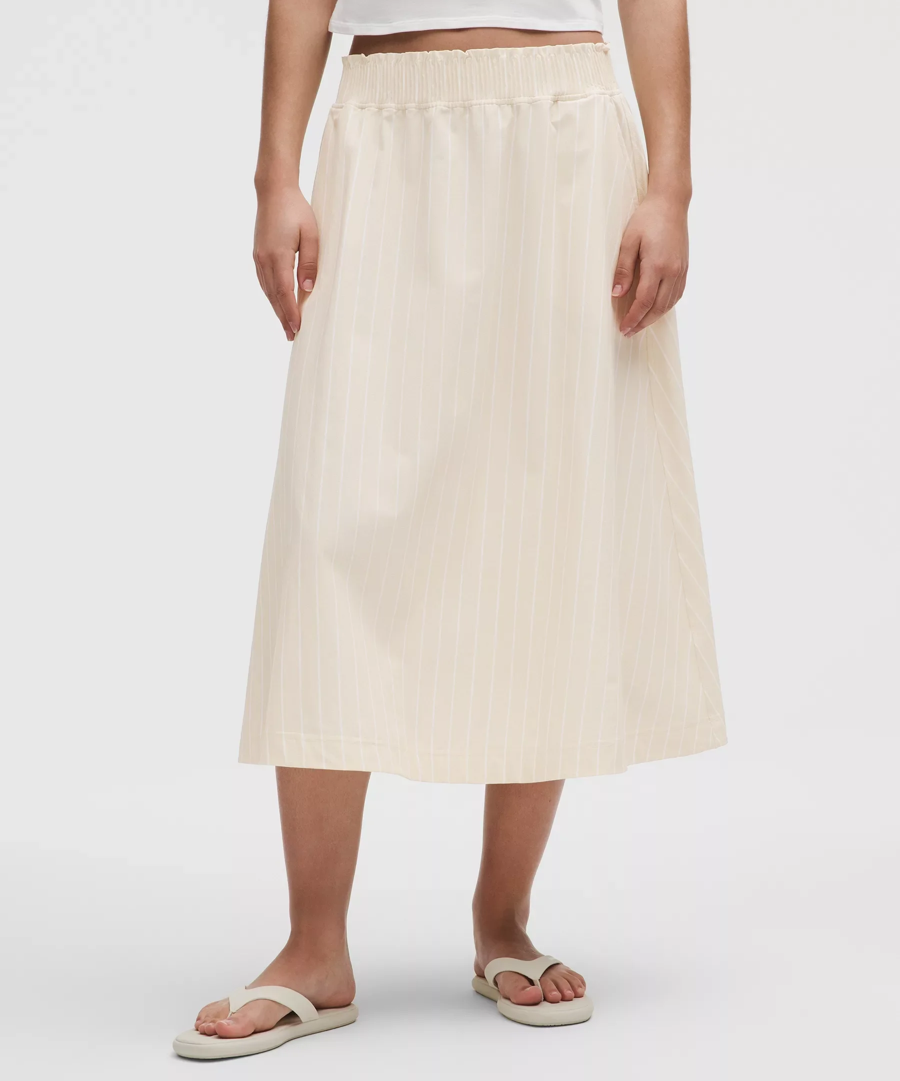 Stretch Woven Ruffle-Waist Midi Skirt