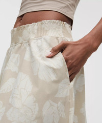Designed for Casual Lightweight, Stretch Woven Fabric - Lightweight - Water-repellent - Fabric has a soft, crinkle texture High Rise, Midi Length - Relaxed fit is roomy through glutes and thighs - Hits below the knee to just above the ankle Product Features - Hand pockets with hidden card sleeve Material and care Materials Body: 89% Nylon11% Elastane - Pocket Lining: 86% Recycled Polyester14% Elastane Care Machine Wash Cold - Do Not Bleach - Tumble Dry Low - Do Not Iron - Do Not Dry Clean - Wash With Like Colors