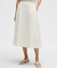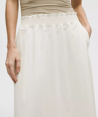 Stretch Woven Ruffle-Waist Midi Skirt