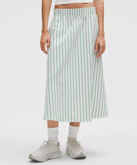 Stretch Woven Ruffle-Waist Midi Skirt