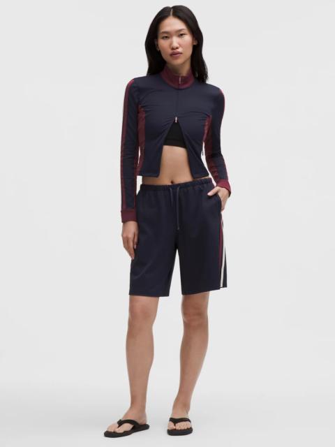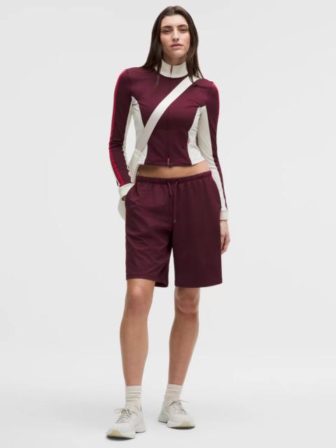 Designed for Training Sweat-Wicking, Pique Knit Fabric - Sweat-wicking - Four-way stretch - Quick-drying Low Rise, 9.5" Length - Relaxed fit is roomy through glutes and thighs Product Features - Hand pockets, one with a hidden card sleeve - Waistband drawcord helps you customize the fit - Side slits at the hem for added mobility Material and care Materials Body: 91% Nylon9% Elastane - Pocket Lining: 90% Polyester (recycled)10% Lycra Elastane Care Machine Wash Cold - Do Not Bleach - Tumble Dry Low - Do Not Iron - Do Not Dry Clean - Wash With Like Colors