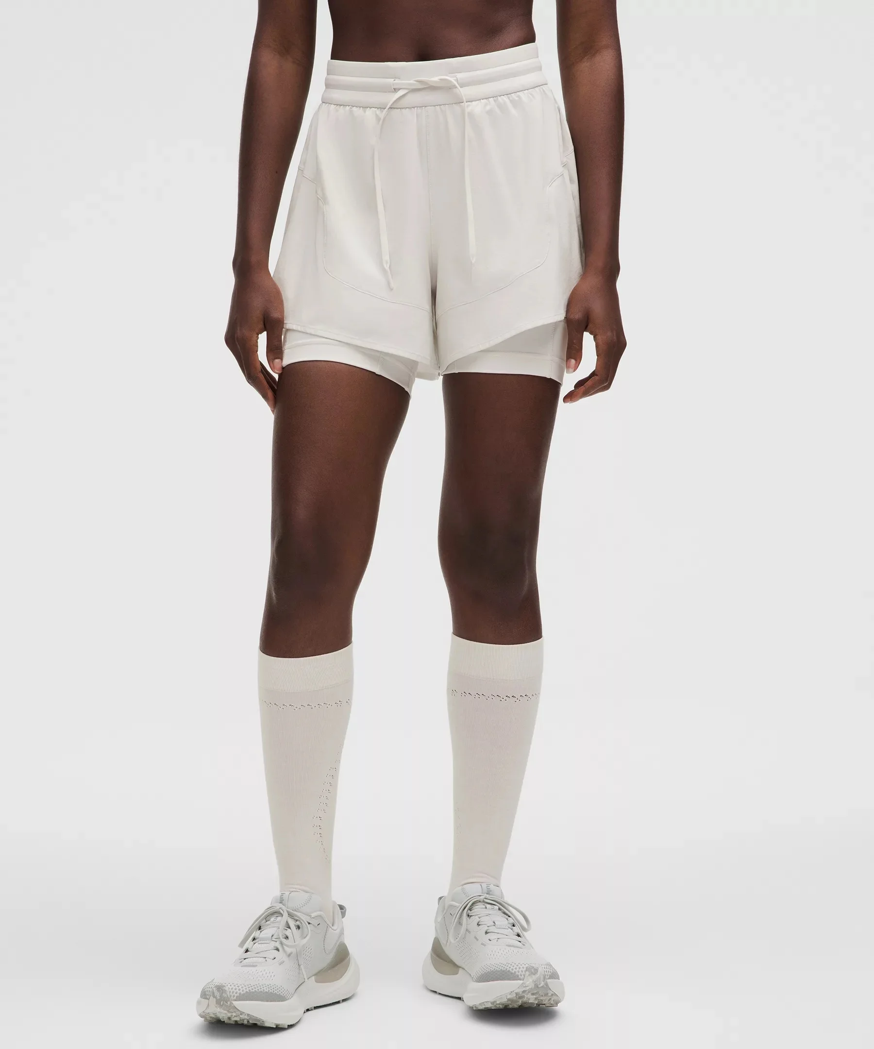 Designed for Casual Sweat-Wicking, Swift Fabric - Sweat-wicking - Four-way stretch - Quick-drying - Everlux™ liner is breathable and fast-drying with added Lycra® High Rise, 6" Liner Length - Relaxed fit is roomy through glutes and thighs - 4" shell length, 6" liner length Product Features - Side drop-in pockets on short liner - Elastic waistband with a drawcord that can be worn inside or out Material and care Materials Liner: 77% Nylon23% Lycra Elastane - Body: 86% Recycled Polyester14% Elastane Care Machine Wash Cold - Do Not Bleach - Tumble Dry Low - Do Not Iron - Do Not Dry Clean - Wash With Like Colors