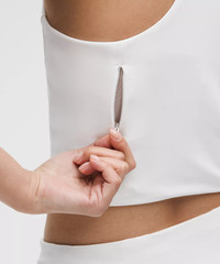 Designed for Running Soft, Sleek Fabric - Soft, sleek, and supportive - Sweat-wicking - Quick-drying - Has a smooth, lightweight feel with a matte finish Medium Support, B/C Cups - Intended to provide medium support for a B/C cup - Tight fit contours your body - Cropped length is cut above the waist—perfect with high-rise pants - Intended for medium-impact activities Product Features - Built-in shelf bra for added support and coverage - Pockets for optional, removable cups - Racerback shape allows for full range of movement - Zippered back pocket holds a phone and other essentials Material and care Materials Body: 68% Nylon32% Elastane - Cup Liner: 89% Nylon11% Elastane - Inner Center Panel Lining: 100% Nylon - Front Lining: 100% Nylon - Bra Lining: 56% Polyester33% Coolmax Polyester11% Lycra Elastane Care Machine Wash Cold - Do Not Bleach - Tumble Dry Low - Do Not Iron - Do Not Dry Clean - Wash With Like Colors