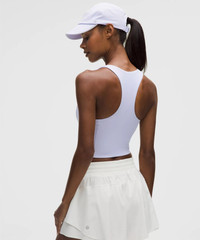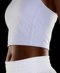 Designed for Running Soft, Sleek Fabric - Soft, sleek, and supportive - Sweat-wicking - Quick-drying - Has a smooth, lightweight feel with a matte finish Medium Support, B/C Cups - Intended to provide medium support for a B/C cup - Tight fit contours your body - Cropped length is cut above the waist—perfect with high-rise pants - Intended for medium-impact activities Product Features - Built-in shelf bra for added support and coverage - Pockets for optional, removable cups - Racerback shape allows for full range of movement - Zippered back pocket holds a phone and other essentials Material and care Materials Body: 68% Nylon32% Elastane - Bra Lining: 90% Recycled Polyester10% Lycra Elastane - Cup Liner: 89% Recycled Nylon11% Elastane Care Machine Wash Cold - Do Not Bleach - Tumble Dry Low - Do Not Iron - Do Not Dry Clean - Wash With Like Colors