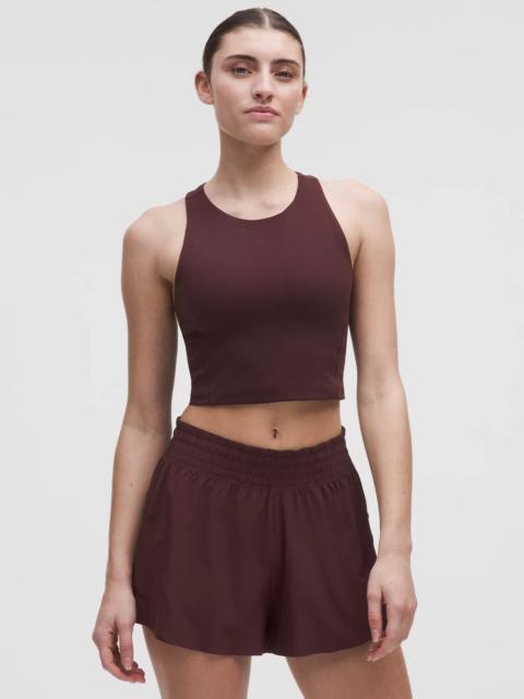 Designed for Running Soft, Sleek Fabric - Soft, sleek, and supportive - Sweat-wicking - Quick-drying - Has a smooth, lightweight feel with a matte finish Medium Support, B/C Cups - Intended to provide medium support for a B/C cup - Tight fit contours your body - Cropped length is cut above the waist—perfect with high-rise pants - Intended for medium-impact activities Product Features - Built-in shelf bra for added support and coverage - Pockets for optional, removable cups - Racerback shape allows for full range of movement - Zippered back pocket holds a phone and other essentials Material and care Materials Cup Liner: 89% Recycled Nylon11% Elastane - Bra Lining: 90% Recycled Polyester10% Lycra Elastane - Body: 68% Nylon32% Elastane Care Machine Wash Cold - Do Not Bleach - Tumble Dry Low - Do Not Iron - Do Not Dry Clean - Wash With Like Colors