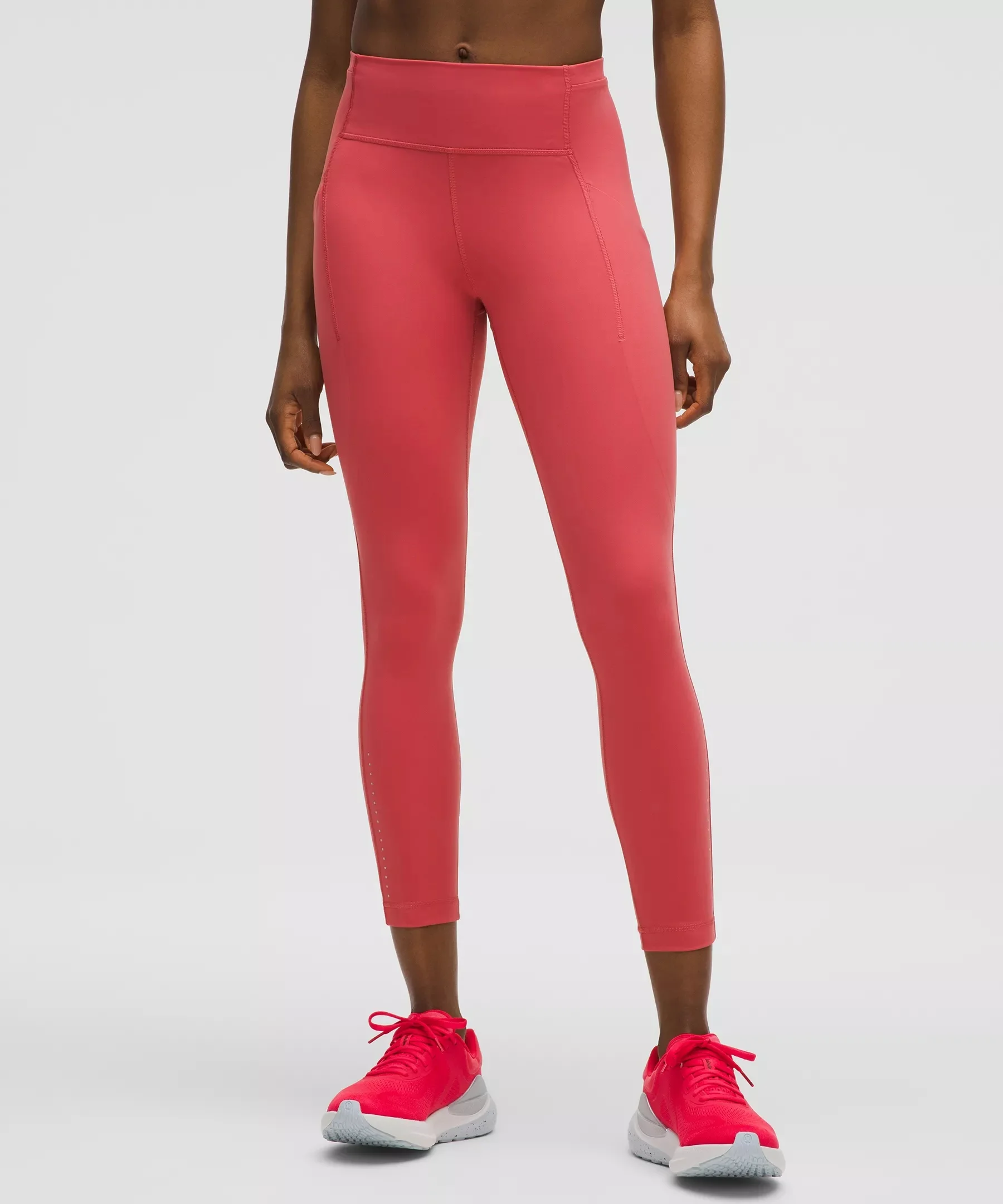 Designed for Running Soft, Sleek Fabric - Soft, sleek, and supportive - Four-way stretch - Sweat-wicking - Quick-drying - Has a smooth, lightweight feel with a matte finish High Rise, 25" Length - Intended to sit above ankle Product Features - Side drop-in pockets - Back zippered pocket - Internal drawcord lets you customize your fit - Reflective details Material and care Materials Body: 68% Nylon32% Elastane - Gusset: 90% Recycled Polyester10% Lycra Elastane Care Machine Wash Cold - Do Not Bleach - Tumble Dry Low - Do Not Iron - Do Not Dry Clean - Wash With Like Colors