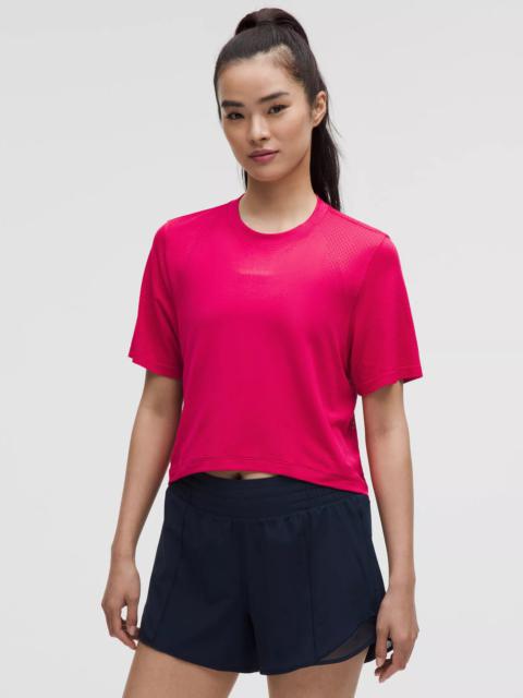 Designed for Running and Training Skip-the-Chafe, Flat-Seam Construction - Seams are flat to reduce chafe - Lightweight - Sweat-wicking - Four-way stretch - Integrated open-hole mesh ventilation to increase breathability Relaxed Fit, Cropped Length - A loose fit with a little extra room - Cut above the waist—perfect with high-rise pants Product Features - Silverescent™ technology, powered by X-STATIC®, inhibits the growth of odour-causing bacteria on the garment Material and care Materials All: 65% Nylon32% Recycled Polyester3% X-Static Nylon Care Machine Wash Cold - Do Not Bleach - Tumble Dry Low - Do Not Iron - Do Not Dry Clean - Contains biocidal silver nitrate (nano) Inhibits odour-causing bacteria - Wash With Like Colors