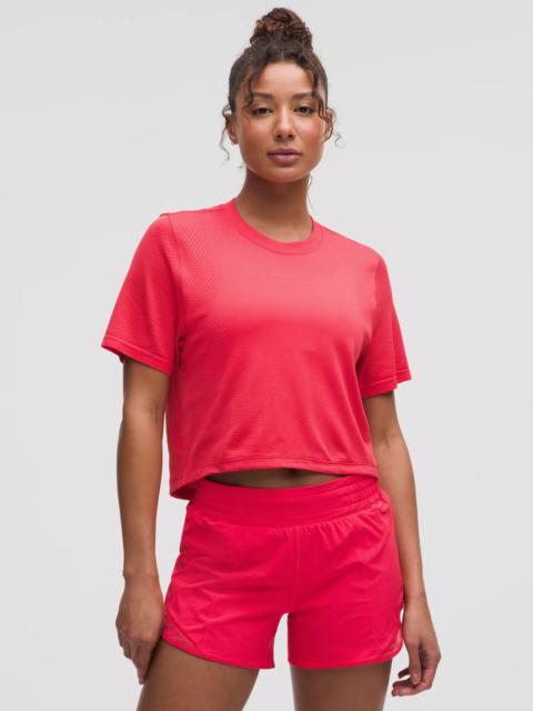 Designed for Running and Training Skip-the-Chafe, Flat-Seam Construction - Seams are flat to reduce chafe - Lightweight - Sweat-wicking - Four-way stretch - Integrated open-hole mesh ventilation to increase breathability Relaxed Fit, Cropped Length - A loose fit with a little extra room - Cut above the waist—perfect with high-rise pants Product Features - Silverescent™ technology, powered by X-STATIC®, inhibits the growth of odour-causing bacteria on the garment Material and care Materials All: 65% Nylon32% Recycled Polyester3% X-Static Nylon Care Machine Wash Cold - Do Not Bleach - Tumble Dry Low - Do Not Iron - Do Not Dry Clean - Contains biocidal silver nitrate (nano) Inhibits odour-causing bacteria - Wash With Like Colors