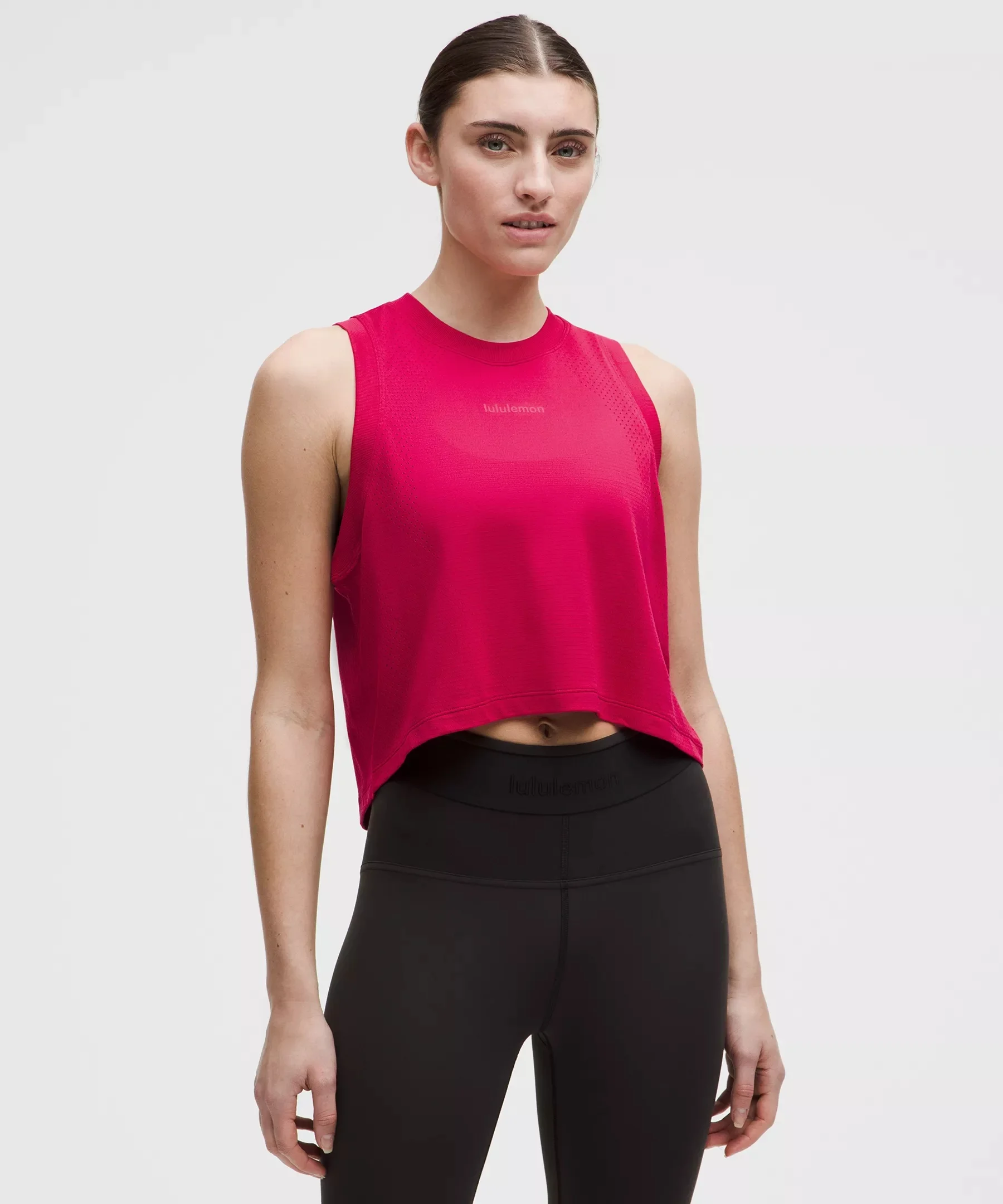 Designed for Running and Training Skip-the-Chafe, Seamless Construction - Minimal seams to reduce chafe - Lightweight - Sweat-wicking - Four-way stretch - Integrated open-hole mesh ventilation to increase breathability Relaxed Fit, Cropped Length - A loose fit with a little extra room - Cut above the waist—perfect with high-rise pants Product Features - Silverescent™ technology, powered by X-STATIC®, inhibits the growth of odour-causing bacteria on the garment Material and care Materials All: 65% Nylon32% Recycled Polyester3% X-Static Nylon Care Machine Wash Cold - Do Not Bleach - Tumble Dry Low - Do Not Iron - Do Not Dry Clean - Contains biocidal silver nitrate (nano) Inhibits odour-causing bacteria - Wash With Like Colors