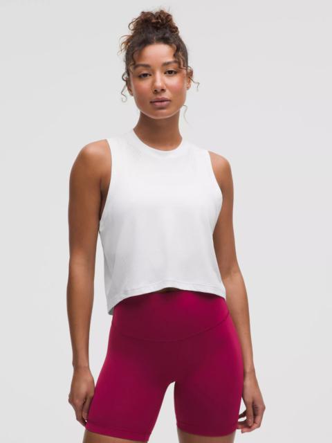 Designed for Running and Training Skip-the-Chafe, Seamless Construction - Minimal seams to reduce chafe - Lightweight - Sweat-wicking - Four-way stretch - Integrated open-hole mesh ventilation to increase breathability Relaxed Fit, Cropped Length - A loose fit with a little extra room - Cut above the waist—perfect with high-rise pants Product Features - Silverescent™ technology, powered by X-STATIC®, inhibits the growth of odour-causing bacteria on the garment Material and care Materials All: 65% Nylon32% Recycled Polyester3% X-Static Nylon Care Machine Wash Cold - Do Not Bleach - Tumble Dry Low - Do Not Iron - Do Not Dry Clean - Contains biocidal silver nitrate (nano) Inhibits odour-causing bacteria - Wash With Like Colors