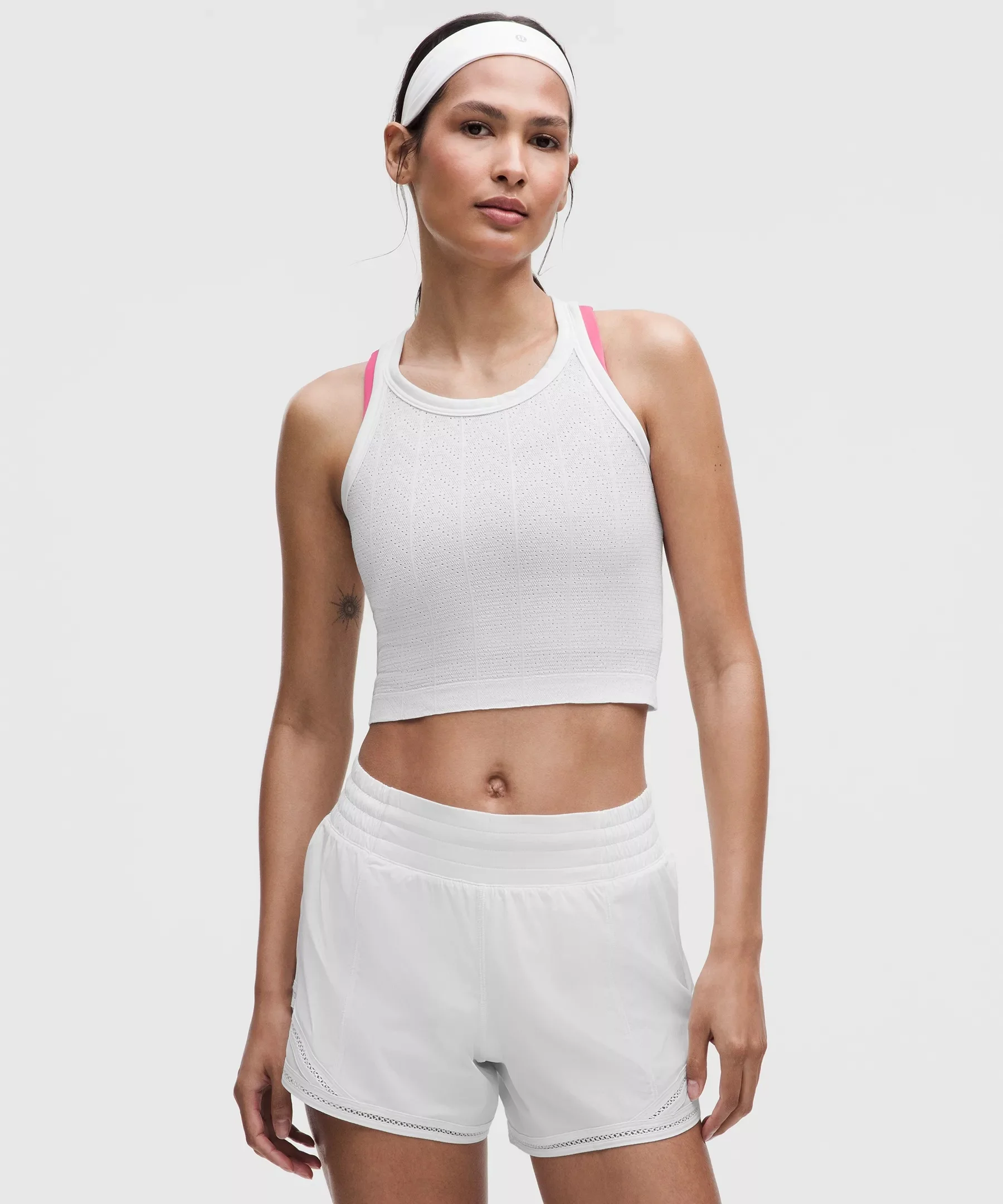 Designed for Running and Training Skip-the-Chafe, Flat-Seam Construction - Seams are flat to reduce chafe - Lightweight - Mesh construction for breathability Slim Fit, Cropped Length - Skims your body - Cut above the waist—perfect with high-rise pants Product Features - Silverescent™ technology, powered by X-STATIC®, inhibits the growth of odour-causing bacteria on the garment Material and care Materials All: 66% Nylon31% Recycled Polyester3% X-Static Nylon Care Machine Wash Cold - Do Not Bleach - Tumble Dry Low - Do Not Iron - Do Not Dry Clean - Contains biocidal silver nitrate (nano) Inhibits odour-causing bacteria, Wash With Like Colors