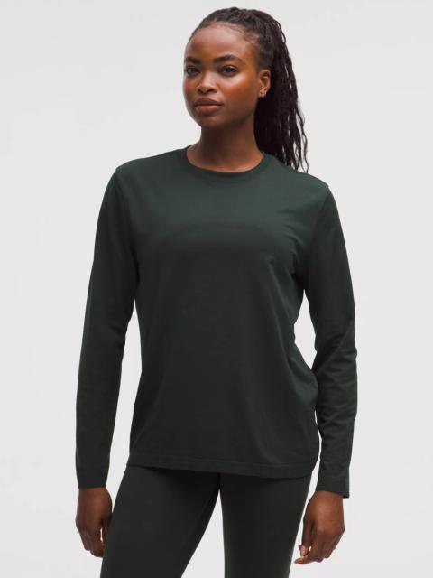Designed for Running and Training Seamless Construction - Our seamless knitting technique engineers targeted texture and breathability into the garment without the need for extra seams - Lightweight - Four-way stretch - Sweat-wicking - Added elastane improves stretch and shape retention Relaxed Fit, Hip Length - A loose fit with a little extra room - Sits below the waistband for moderate, everyday coverage Product Features - Silverescent™ technology, powered by X-STATIC®, inhibits the growth of odour-causing bacteria on the garment Material and care Materials All: 54% Nylon40% Polyester (recycled)3% Elastane3% X-Static Nylon Care Machine Wash Cold - Do Not Bleach - Tumble Dry Low - Do Not Iron - Do Not Dry Clean - Contains biocidal silver nitrate (nano) Inhibits odour-causing bacteria - Wash With Like Colors