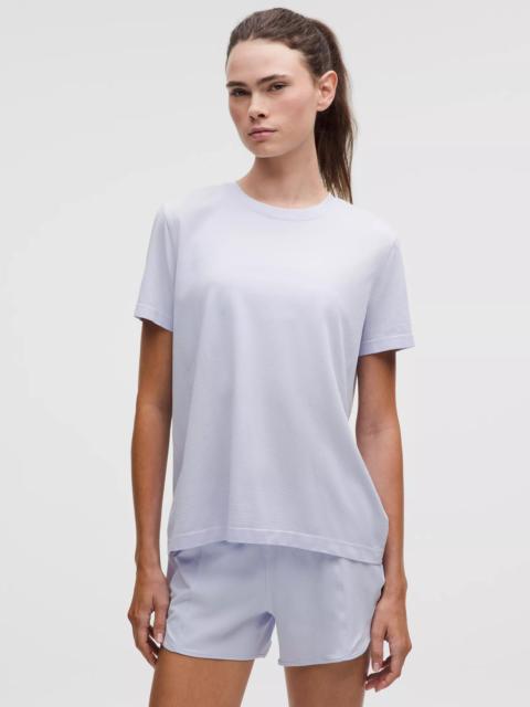Designed for Running and Training Seamless Construction - Our seamless knitting technique engineers targeted texture and breathability into the garment without the need for extra seams - Lightweight - Quick-drying - Sweat-wicking - Added elastane for stretch and shape retention Updated Relaxed Fit, Hip Length - A loose fit with a little extra room - Sits below the waistband for moderate, everyday coverage feature_generic - Product Features - Silverescent™ technology, powered by X-STATIC®, inhibits the growth of odour-causing bacteria on the garment Material and care Materials All: 49% Nylon43% Recycled Polyester5% Elastane3% X-Static Nylon Care Machine Wash Cold - Do Not Bleach - Tumble Dry Low - Do Not Iron - Do Not Dry Clean - Contains biocidal silver nitrate (nano) Inhibits odour-causing bacteria - Wash With Like Colors
