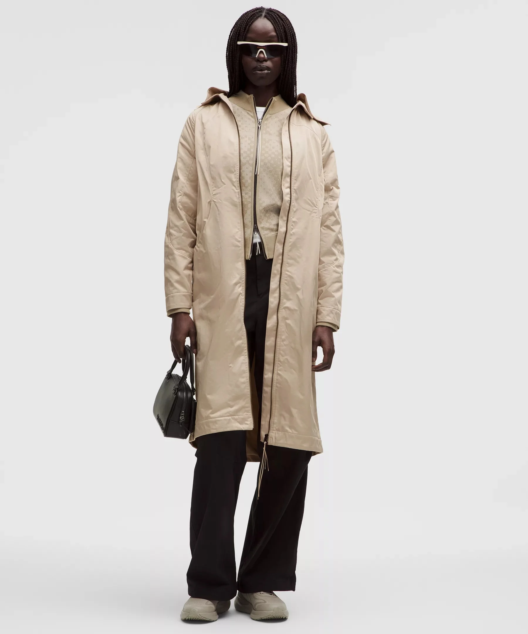 Designed for Casual Water-Resistant Fabric - Water-resistant - Windproof - Fabric has a soft shine Oversized Fit, Calf Length - Oversized fit is purposefully large with exaggerated proportions. Size down if you prefer a slimmer fit Product Features - Snap-closure hand pockets - Zippered interior chest pocket and stow pockets for hood - Hood cinches in the back - Back vent strategically placed to provide airflow - Adjustable tabs change the fit of the waist and cuffs Material and care Materials Inner Layer Upper Lining: 48% Recycled Polyester45% Elastomultiester7% Elastane - Lining: 100% Recycled Nylon - Body: 100% Polyester Care Machine Wash Cold - Do Not Bleach - Tumble Dry Low - Do Not Iron - Do Not Dry Clean - Wash With Like Colors