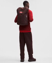 Designed for Casual Water-Repellent Fabric - Fabric is water-repellent Measurements - Dimension: 27.5cm x 26cm x 60cm (10.8" x 10.2" x 23.6") - Volume when rolled: 33L, Volume when fully expanded: 45L Product Features - Shoulder straps have adjustable sternum strap and padded back panel provides lumbar support - Front zippered pocket withmultiple internal pockets - Side pockets for quick access to water bottle and small items - Attach your favouritecollectible pins to the bagusing the designated eyelets - Zippered main compartment withroll-top and buckle closure - Interior padded pocket fits a 16" laptop - Trolley-compatible sleeve - BONUS: Attach your favouritebelt bag to the pack byfeeding its strap through thediscreet side slits located ontrolley sleeve - Features the Canadian Olympic Committee logo Material and care Materials Lining: 100% Polyester (recycled) - Contrast Fabric Back: 100% Polyester - Mesh: 100% Polyester (recycled) - Body: 100% Nylon (recycled) Care Do Not Wash - Do Not Bleach - Do Not Tumble Dry - Do Not Iron - Do Not Dry Clean - Spot Clean