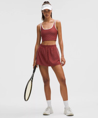 Designed for Tennis Textured Mesh Fabric - Diamond-patterned mesh - Four-way stretch - Sweat-wicking - Quick-drying High Rise, Mid-Thigh Length - 3" liner length Product Features - Built-in liner offers extra coverage - Stash your stuff in the side drop-in pockets on the short liner - Silicone grippers on the hem prevent ride-up Material and care Materials Body: 79% Nylon21% Lycra Elastane Care Machine Wash Cold - Do Not Bleach - Tumble Dry Low - Do Not Iron - Do Not Dry Clean - Wash With Like Colors
