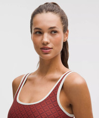 Designed for Tennis Textured Mesh Fabric - Diamond-patterned mesh - Four-way stretch - Sweat-wicking - Quick-drying Medium Support, B/C Cups - Intended to provide support for B/C cups - Tight fit contours your body - Cropped length is cut above the waist—perfect with high-rise pants - Intended for medium-impact activities Product Features - Built-in shelf bra for added support and coverage - Pockets for optional, removable cups - Lined through body for added coverage Material and care Materials Bra Lining: 90% Recycled Polyester10% Lycra Elastane - Lining: 83% Recycled Polyester17% Elastane - Middle Layer: 89% Recycled Nylon11% Elastane - Body: 79% Nylon21% Lycra Elastane Care Machine Wash Cold - Do Not Bleach - Tumble Dry Low - Do Not Iron - Do Not Dry Clean - Wash With Like Colors