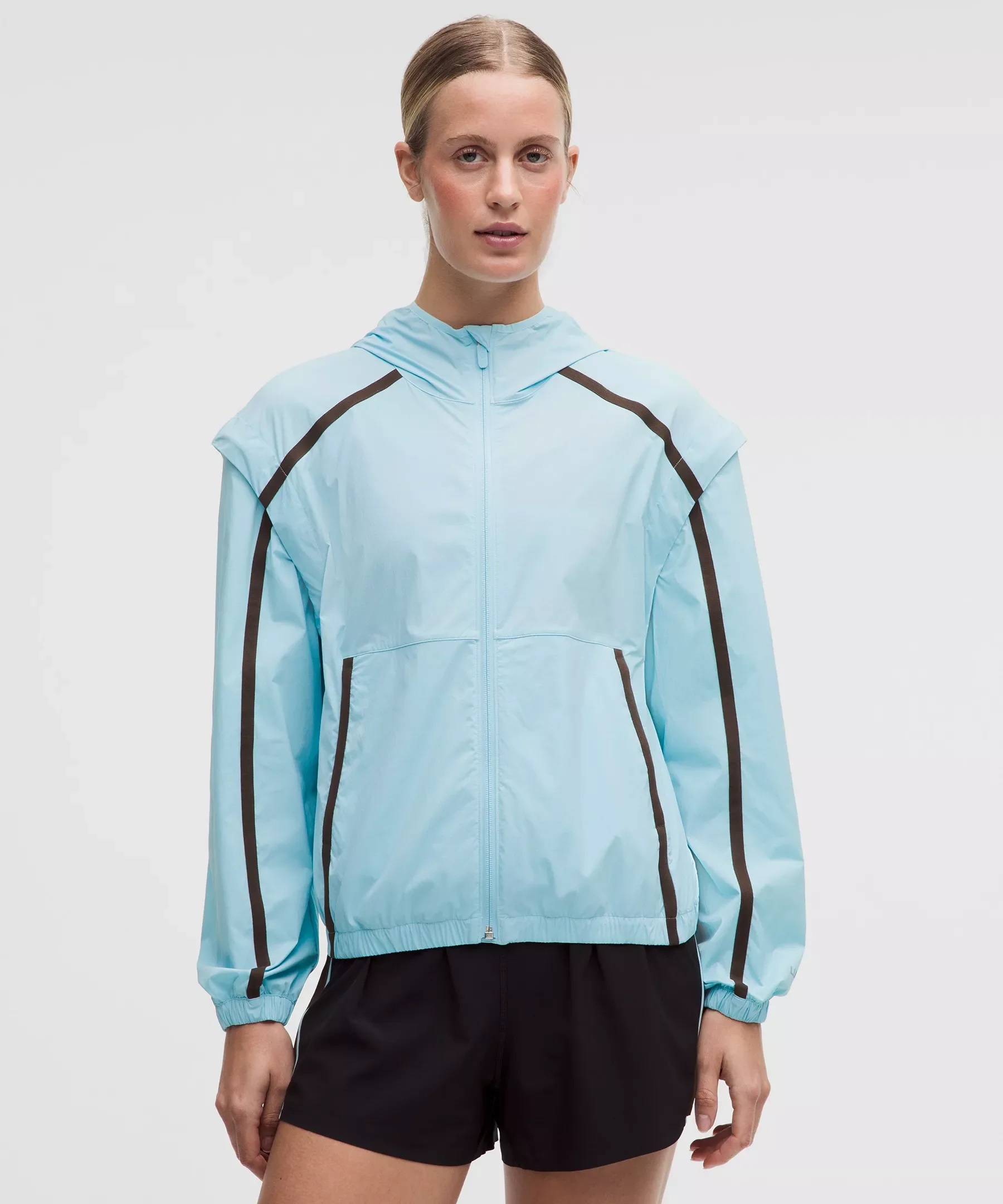 Designed for Training Water-Resistant, Glyde™ Fabric - Water-resistant - Wind-resistant - Natural feel - Fabric appears slightly sheer in light colours - 100% of the polyester and nylon in this product is recycled (excluding trims) Relaxed Fit, Hip Length - Relaxed fit feels roomy and can be worn over larger layers. Size down if you prefer a slimmer fit Product Features - Zippered hand pockets with hidden phone sleeve - Hood cinches at the back to maintain peripheral visibility - No-bounce loop keeps your hood in place - Back vent strategically placed to provide airflow - Zip off the sleeves to convert from jacket to vest Material and care Materials Mesh: 90% Polyester (recycled)10% Lycra Elastane - Body: 94% Nylon (recycled)6% Elastane Care Machine Wash Cold - Do Not Bleach - Tumble Dry Low - Do Not Iron - Do Not Dry Clean - Wash With Garment Fully Closed - Wash With Like Colors
