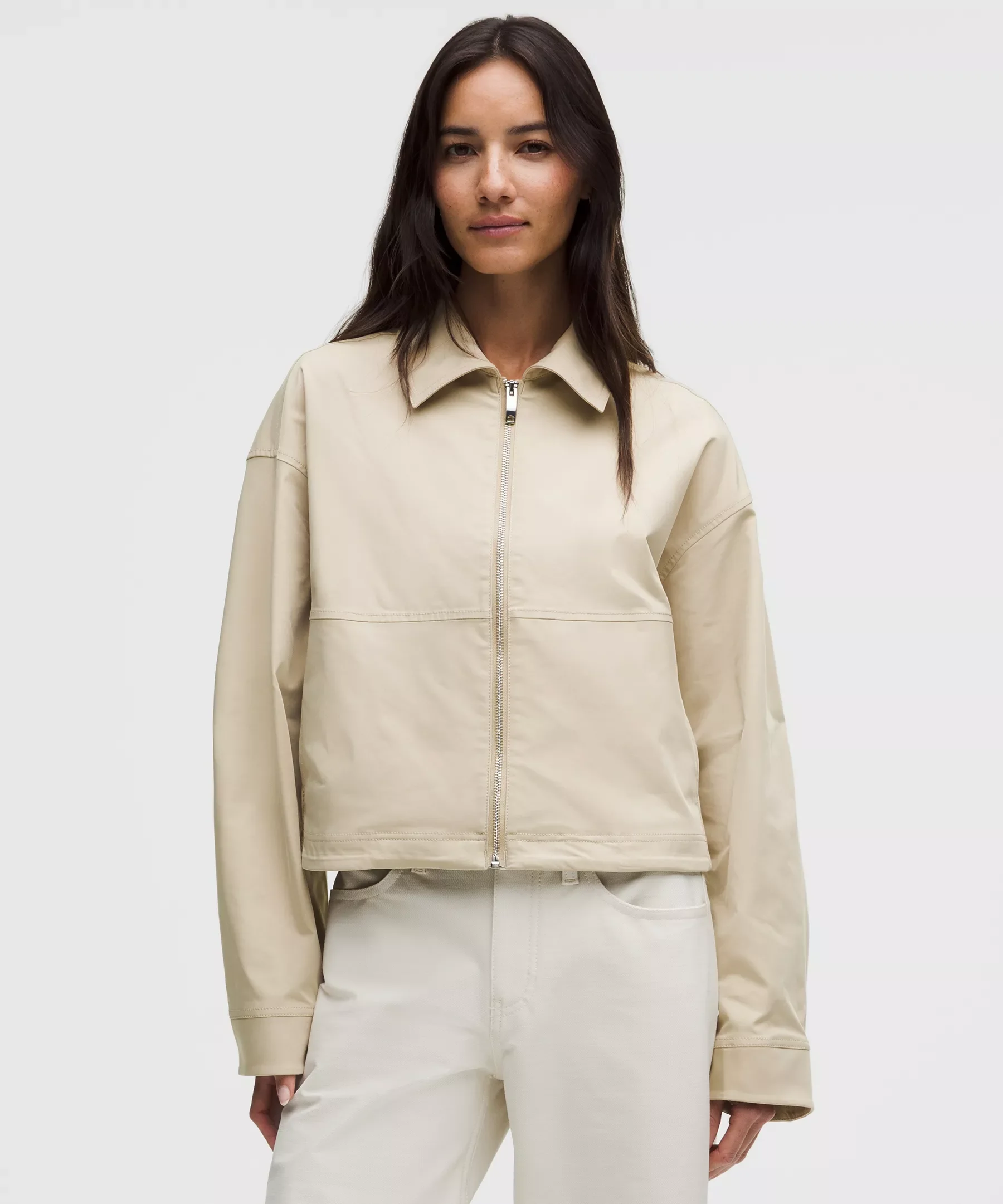 Designed for Casual Water-Repellent, Twill Fabric - Water-repellent - Added stretch - 100% of the polyester in this product is recycled (excluding trims) Relaxed Fit, Waist Length - A loose fit with a little extra room - Not too short, not too long, just right around the waistband Product Features - Hand pockets - Cinchable shockcord hem Material and care Materials Body: 56% Polyester (recycled)44% Elastomultiester - Pocket Lining: 86% Polyester (recycled)14% Elastane Care Machine Wash Cold - Do Not Bleach - Tumble Dry Low - Do Not Iron - Do Not Dry Clean - Wash With Like Colors