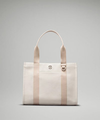 Cotton Canvas Fabric Measurements Dimensions: 37cm x 15cm x 29cm (14.6" x 5.9" x 11.4") Handle drop: 25cm (9.8”) Volume: 10L Product Features Front pocket to store your essentials Clip a nano pack or keychain onto the D-ring Snap closure Zippered interior pocket Interior drop-in pockets Material and care Materials Body: 54% Cotton46% Recycled polyester Lining: 100% Recycled polyester Care Spot clean Do not wash Do not bleach Do not tumble dry Do not iron Do not dry clean Imported