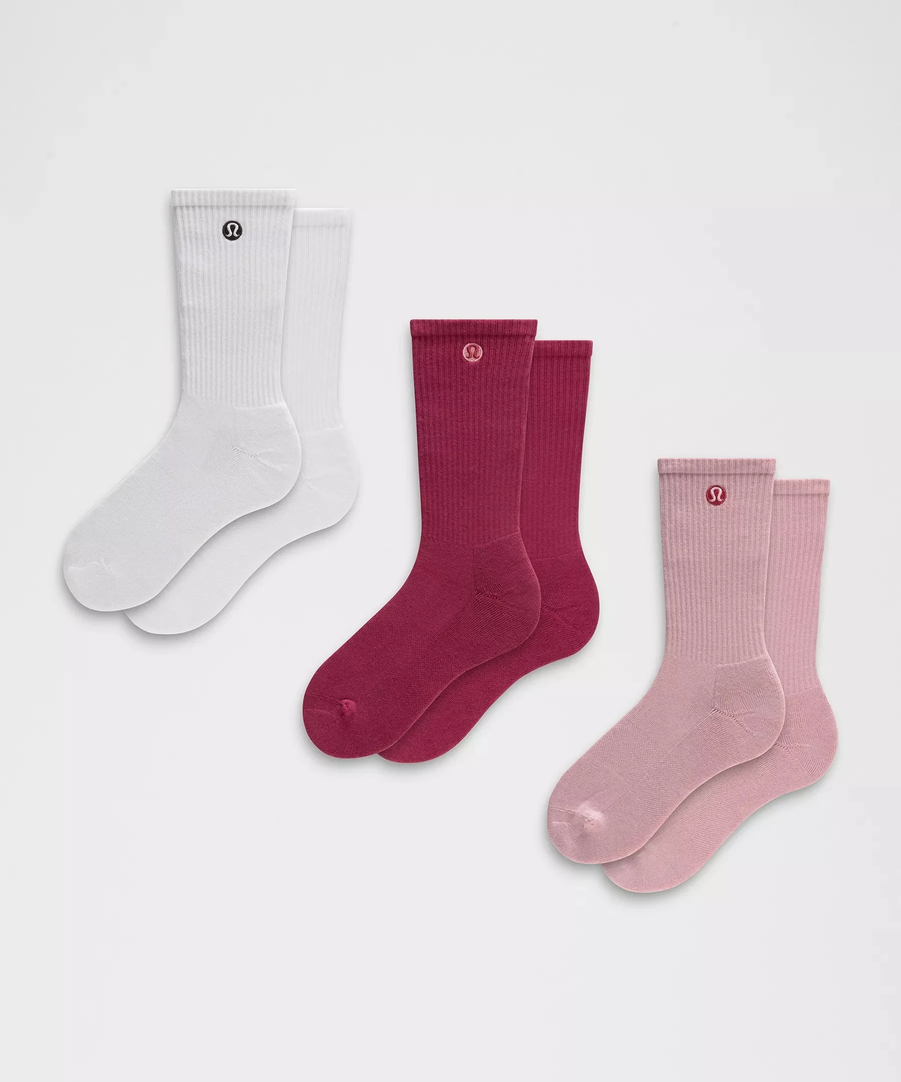 Soft, Cotton-Blend Knit Soft, naturally breathable knit contains 100% cotton yarns and other fibres Crew Length Product Features Soft terry-loops create a cushioned footbed for added comfort Seamless toe construction TerryToe™ cushioning extends over your toes for a layer of protection 360° arch support Stretchy cuff gently hugs your leg to keep socks from falling down Material and care Materials All: 72% Cotton25% Nylon3% Elastane Care Wash with like colours Machine wash cold Do not bleach Tumble dry low Do not iron Do not dry clean