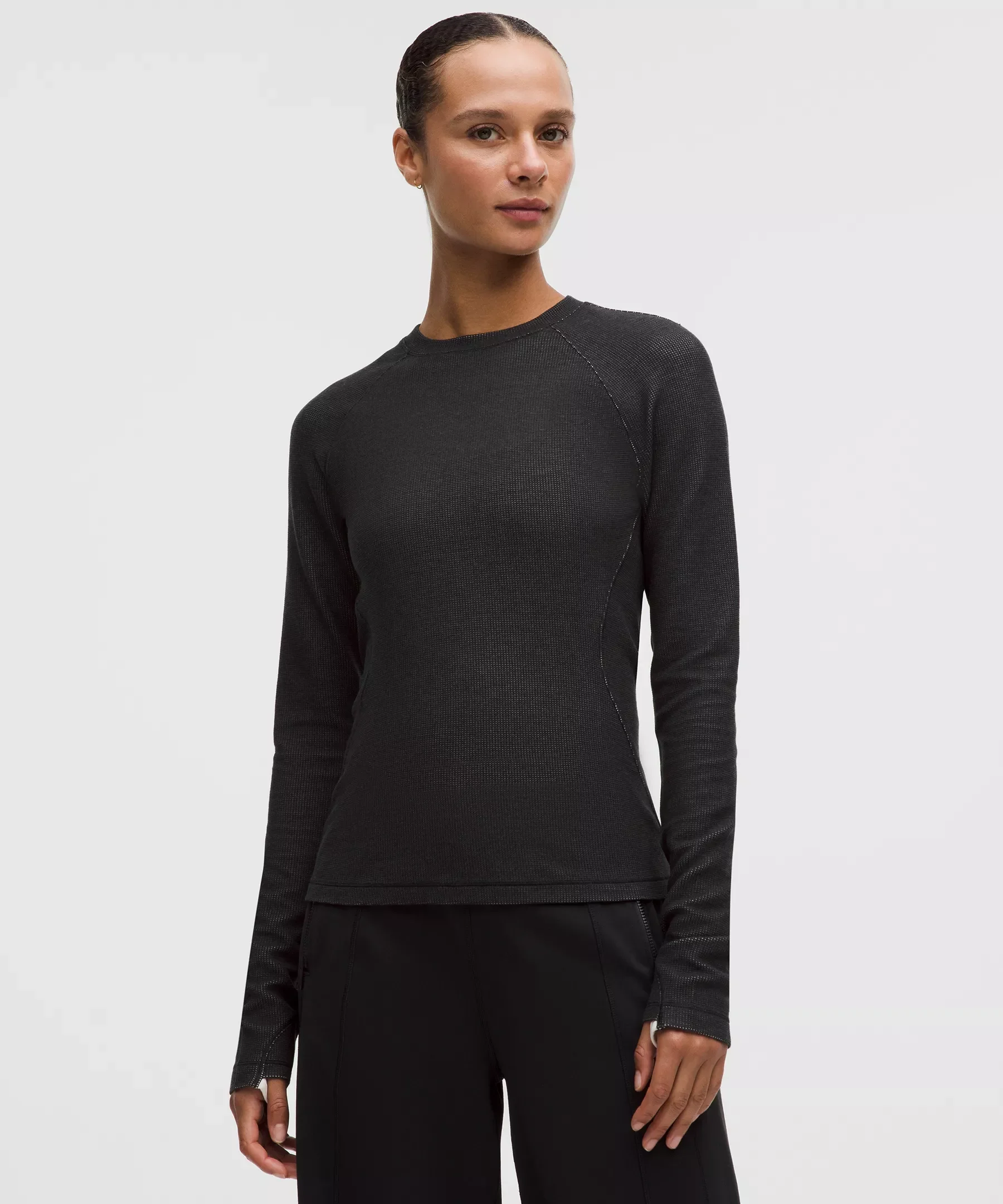 Designed for Hiking Waffle-Knit, Jersey Fabric - Lightweight - Provides mid-warmth - Fabric is derived from wood-based materials from well-managed forests - This product contains wool certified to the Responsible Wool Standard (RWS) by Control Union (TE-00036202) Tight Fit, Hip Length - Contours your body - Sits below the waistband for moderate, everyday coverage Product Features - Thumbholes help keep sleeves down and hands warm Material and care Materials Contrast: 59% Tencel Lyocell31% Merino Wool10% Elastane - Body: 65% Tencel Lyocell30% Polyester (recycled)5% Elastane Care Machine Wash Cold - Do Not Bleach - Tumble Dry Low - Do Not Iron - Do Not Dry Clean - Wash With Like Colors