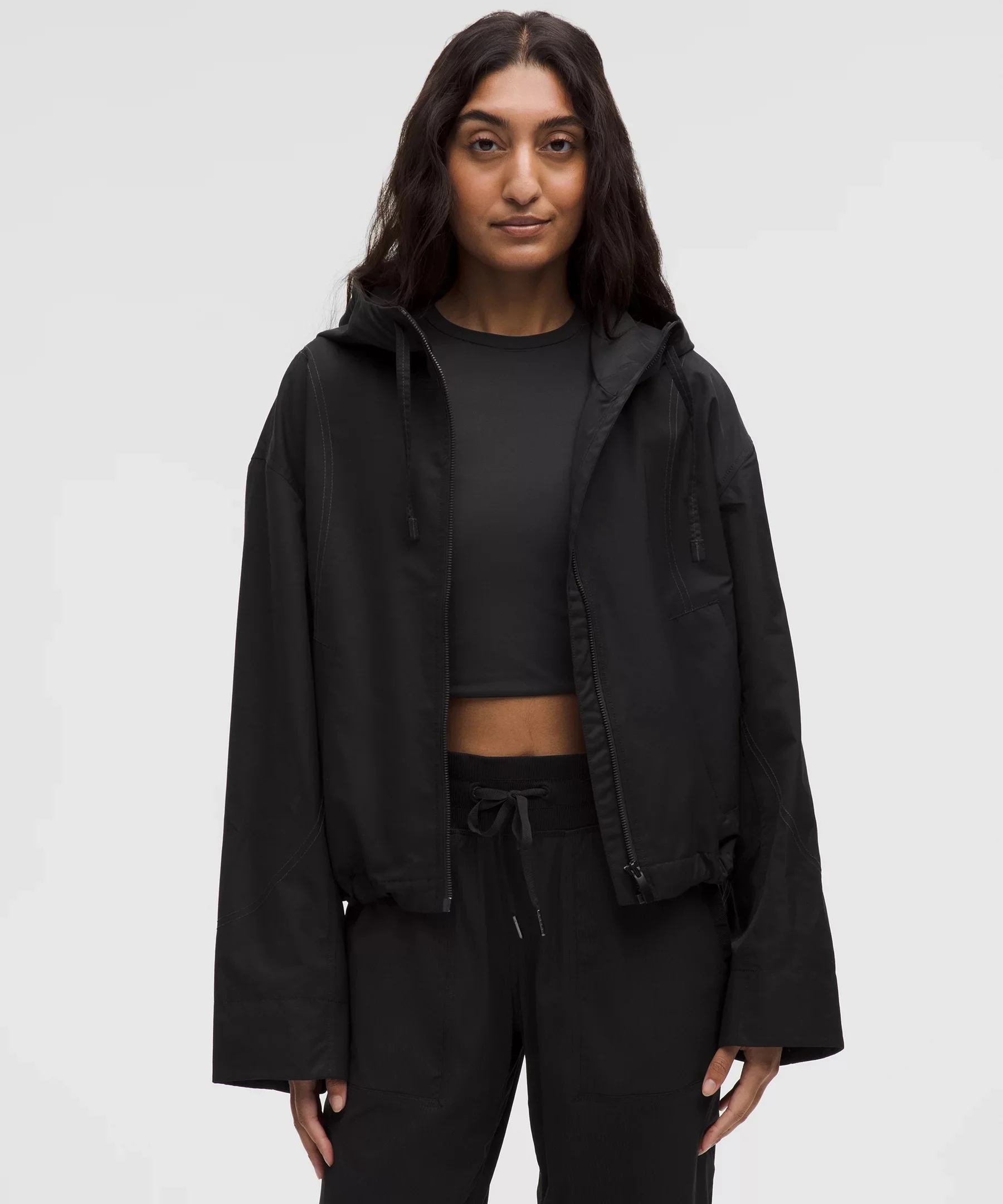 Water-Resistant Cropped Hooded Jacket