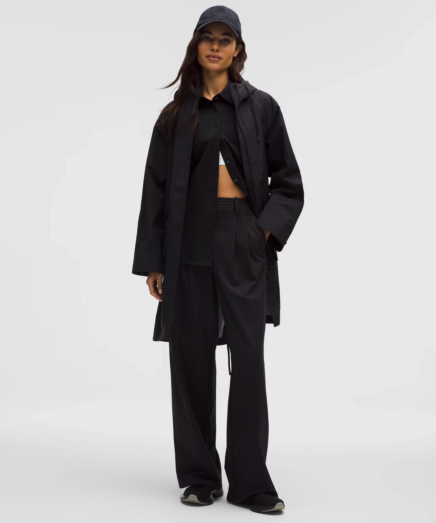 Designed for Casual Waterproof Fabric - Waterproof - Windproof - Breathable - Seam-sealed to keep you dry Relaxed Fit, Knee Length - Relaxed fit feels roomy and can be worn over larger layers. Size down if you prefer a slimmer fit Product Features - Dual-entry hand pockets have snap closures at the top and zippered side entries with a hidden phone sleeve - Hood cinches at the front and back - Two-way zipper - Fishtail hem cinches in the back - Adjustable cuffs Material and care Materials Body: Face: 100% Recycled NylonMiddle: 100% PolyurethaneBack: 100% Recycled Polyester Care Machine Wash Cold - Do Not Bleach - Tumble Dry Low - Do Not Iron - Do Not Dry Clean