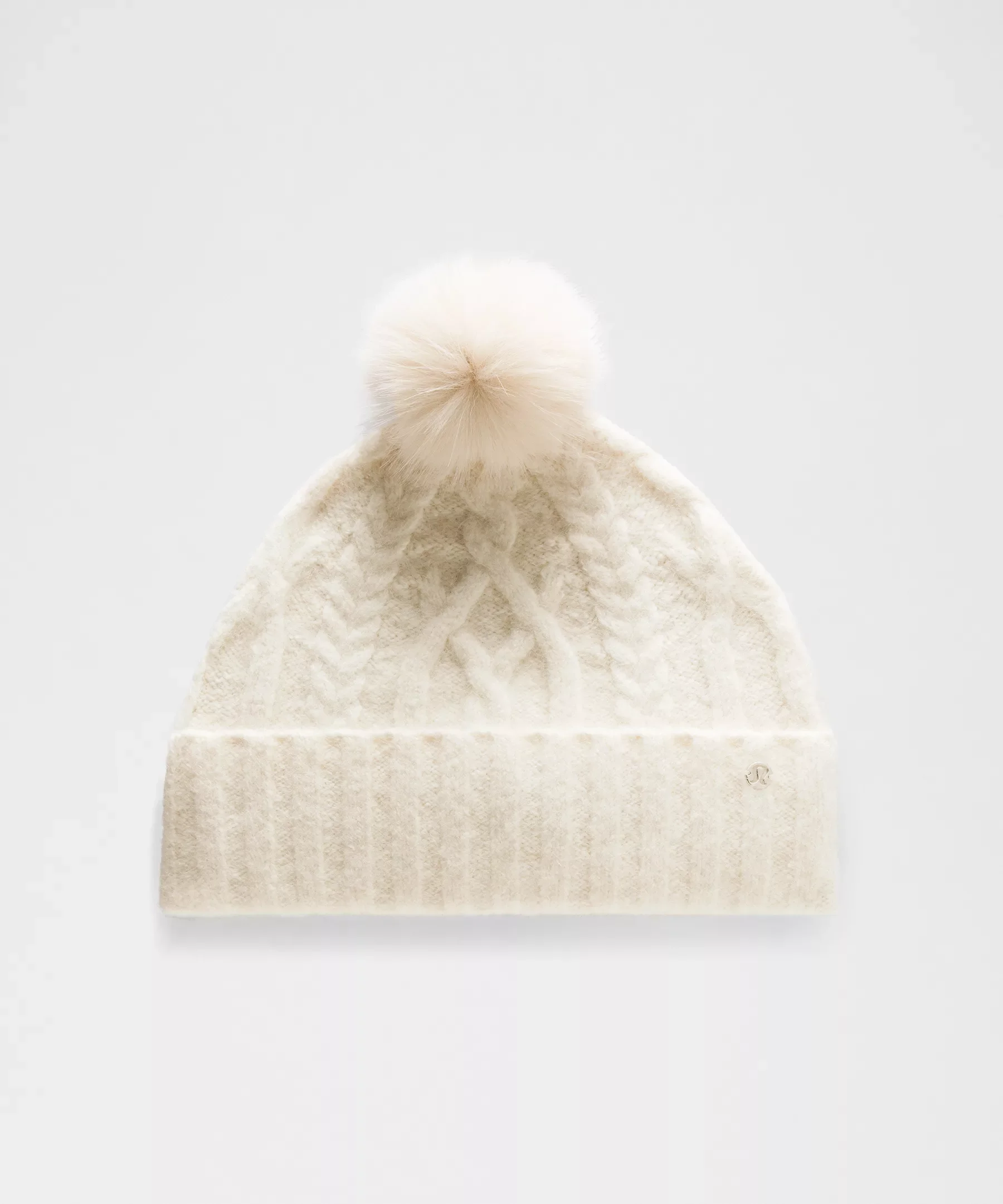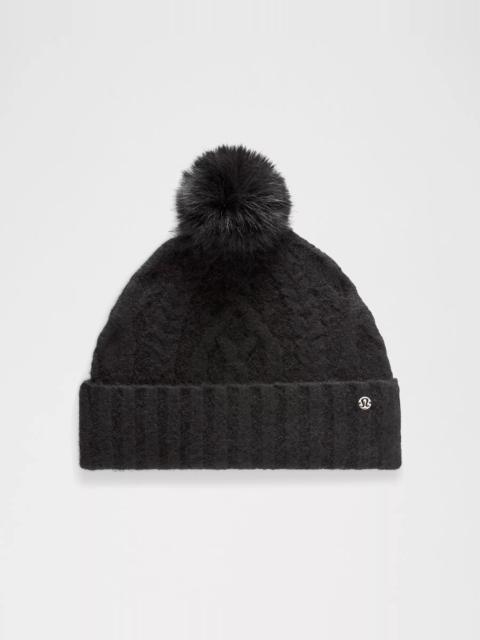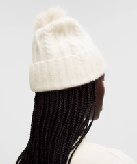 Women's Alpaca Wool-Blend Cable-Knit Pom Beanie