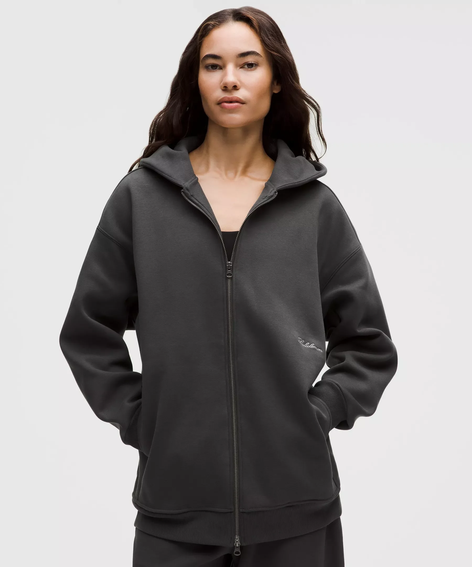 Designed for Casual Soft, Heavyweight Fleece Fabric - Heavyweight - Soft and smooth on the outside - Plush, fleecy interior - Stretchy - 100% of the polyester in this product is recycled (excluding trims) Ultra-Oversized Fit, Bum-Covering Length - A super-exaggerated fit for an ultra-roomy, slouchy look - Long length keeps bum and hips covered Product Features - Hand pockets, one with a hidden card sleeve - Two-way zipper Material and care Materials Lining: 100% Cotton - Rib: 95% Cotton5% Elastane - Body: 66% Recycled Polyester29% Cotton5% Elastane Care Machine Wash Cold - Do Not Bleach - Tumble Dry Low - Do Not Iron - Do Not Dry Clean - Wash With Like Colors