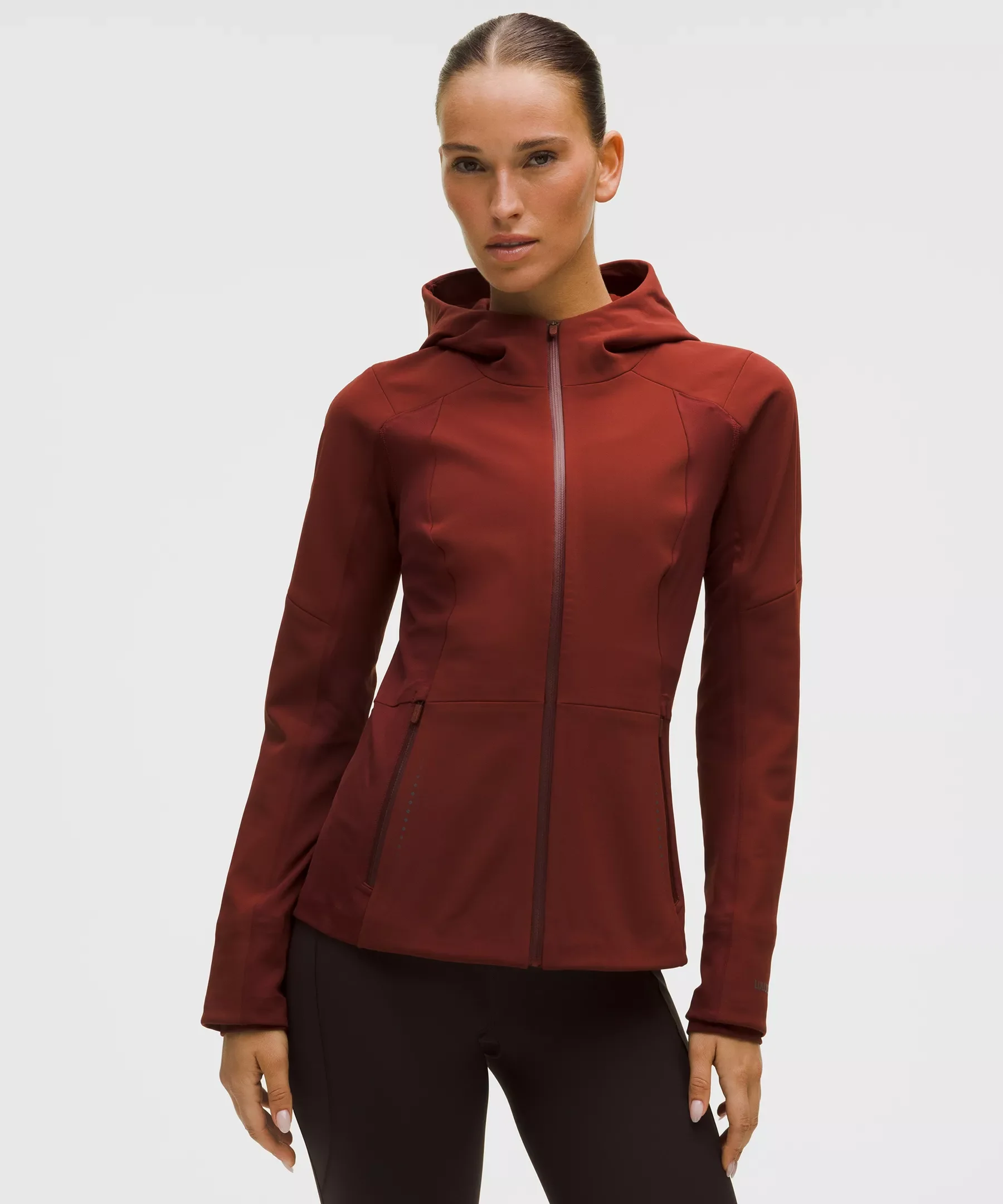 Designed for Running Waterproof, StretchSeal™ Fabric - Waterproof - Windproof - Breathable - Four-way stretch - Super-soft fleece backing - Four-way stretch, water-repellent tech fleece fabric is brushed for warmth Slim Fit, Hip Length - Slim fit skims your body Product Features - Zippered exterior pockets with a hidden phone sleeve - Zippered back pocket - Hood cinches at the back to maintain peripheral visibility - Reflective details - Thumbholes Material and care Materials Side Panels: 82% Nylon18% Lycra Elastane Care Machine Wash Cold - Do Not Bleach - Tumble Dry Low - Do Not Iron - Do Not Dry Clean - Do Not Use Fabric Softener - Wash With Like Colors
