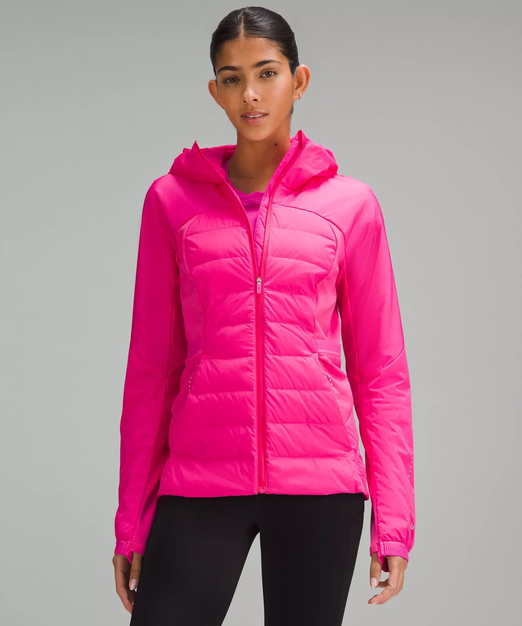 Designed for Running Water-Resistant, Glyde™ Fabric - Water-resistant - Windproof - Four-way stretch, water-repellent tech fleece fabric is brushed for warmth - PrimaLoft® insulation in the hood, shoulders, and sleeves stays warm even when wet - Main body is filled with 700-fill-power goose down for lightweight warmth at your core - 100% of our down is certified to the Responsible Down Standard (RDS) by Control Union (TE-00036202) Slim Fit, Hip Length - Slim fit skims your body Product Features - Zippered hand pockets with hidden phone sleeve - Thumbholes - Reflective details Material and care Materials Hood Filling: 75% Polyester (recycled)25% Polyester - Sleeve Filling: 75% Polyester (recycled)25% Polyester - Lining: 90% Nylon10% Elastane - Hood: 100% Nylon - Upper Panel: 100% Nylon - Sleeve Lining: 100% Nylon - Body Filling: 85% White Goose Down15% White Goose Feather - Body: 90% Nylon10% Elastane - Sleeves: 82% Nylon18% Lycra Elastane - Side Panels: 82% Nylon18% Lycra Elastane Care Machine Wash Cold - Do Not Bleach - Tumble Dry Low - Do Not Iron - Do Not Dry Clean - Tumble Dry Low With Clean Tennis Balls, Wash With Like Colors