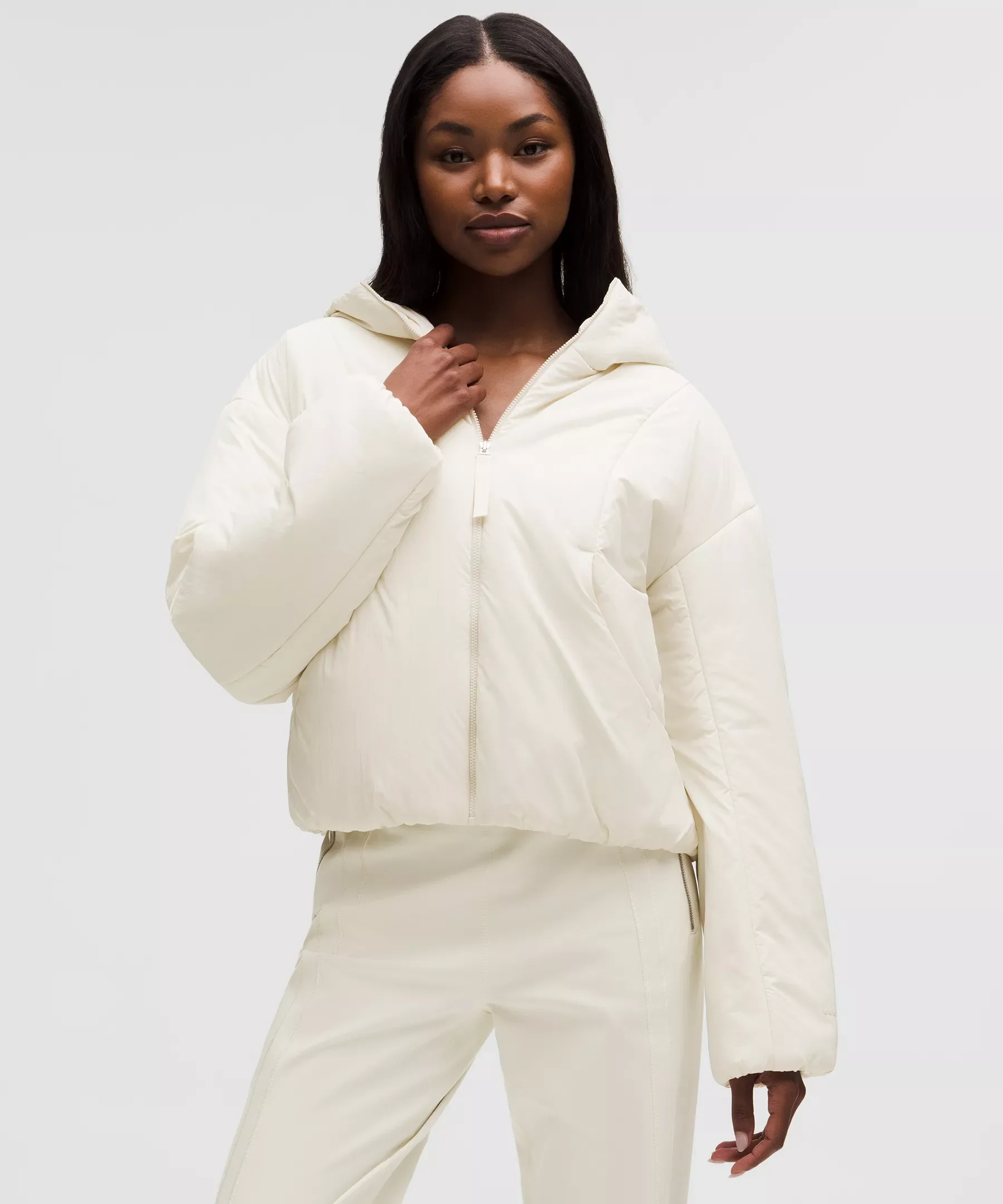Designed for Casual Water-Resistant, Glyde™ Fabric - Water-resistant - Windproof - Silky-soft texture - PrimaLoft® Gold's microfibre construction traps tiny pockets of air for superior warmth retention with a nearly weightless feel. Easily compressible, it's designed for comfort in a variety of temperatures and retains heat even when wet - Mid warmth is designed with zoned RDS Down or Primaloft® insulation to regulate body temperature Oversized Fit, Cropped Length - Oversized fit is purposefully large with exaggerated proportions. Size down if you prefer a slimmer fit Product Features - Slip-in hand pockets with one hidden phone sleeve - Elastic cuffs keep heat held in Material and care Materials Filling: 100% Polyester (recycled) - Mesh: 90% Polyester (recycled)10% Lycra Elastane - Body: 100% Nylon - Lining: 100% Nylon Care Machine Wash Cold - Do Not Bleach - Tumble Dry Low - Do Not Iron - Do Not Dry Clean - Wash With Garment Fully Closed - Wash With Like Colors